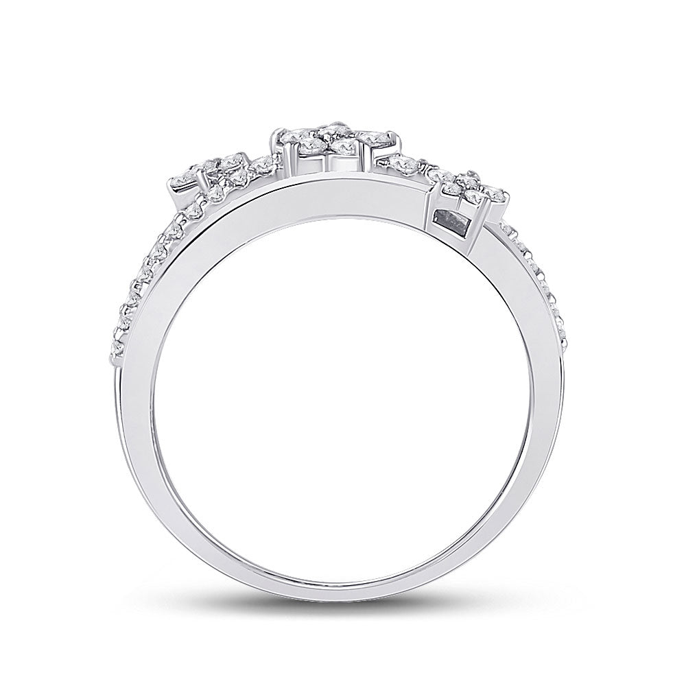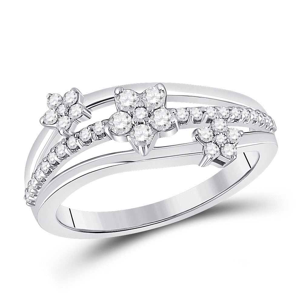 Keene Jewelers 10kt White Gold Womens Round Diamond Flower Star Band Ring 1/3 Cttw