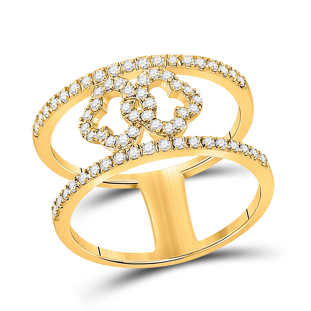 Keene Jewelers 10kt Yellow Gold Womens Round Diamond Linked Clover Fashion Ring 3/8 Cttw