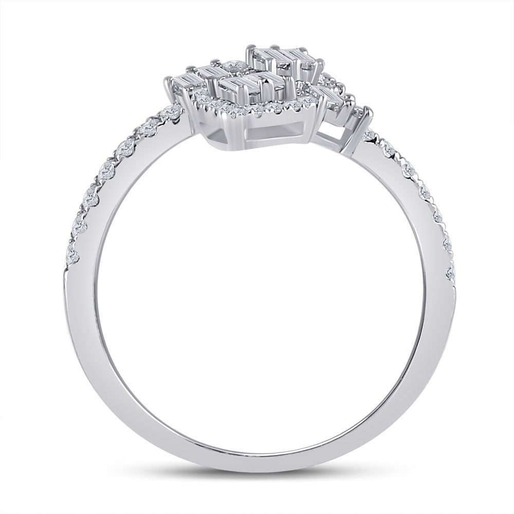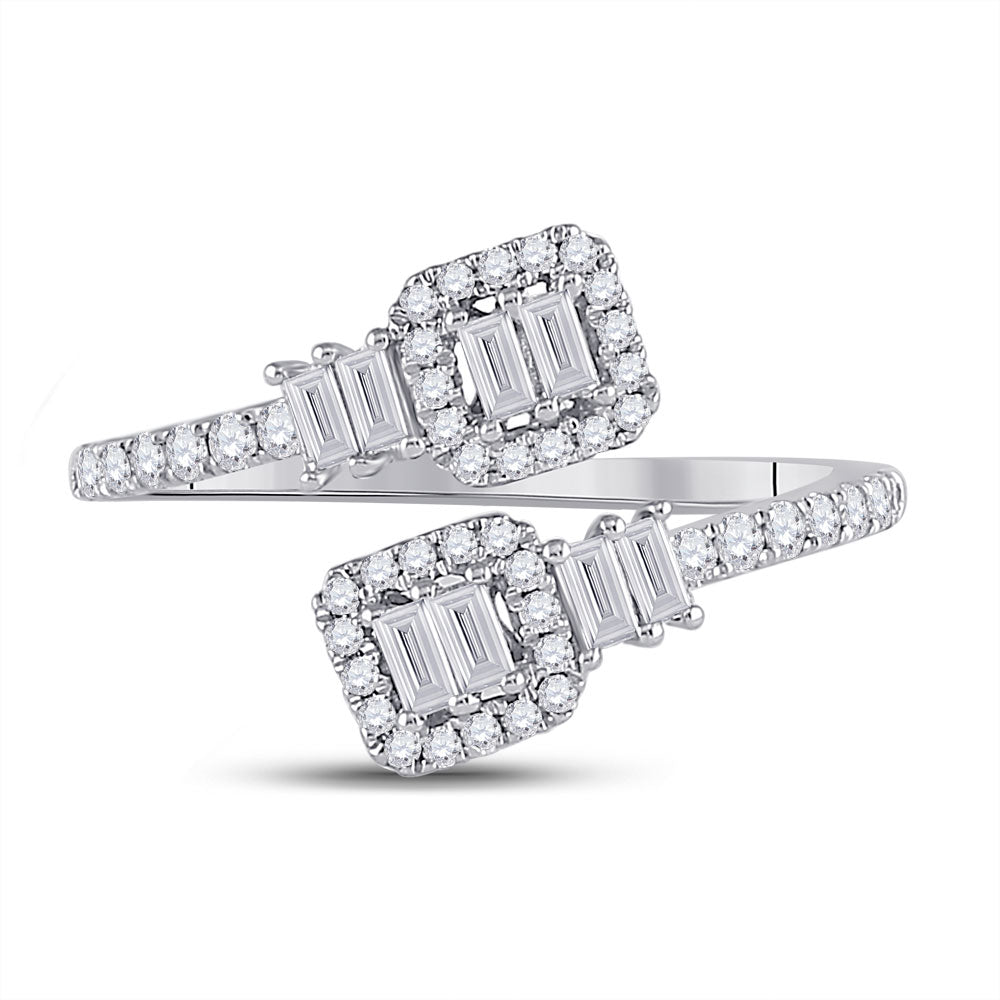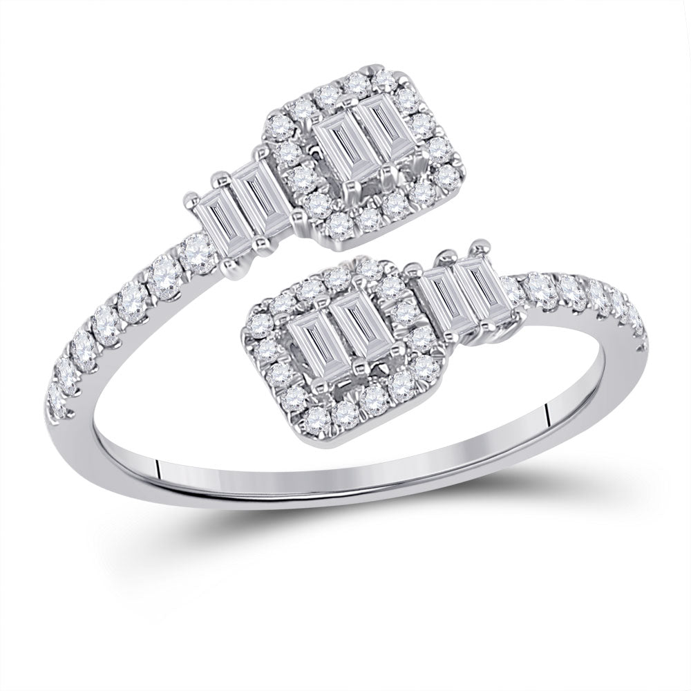 Keene Jewelers 14kt White Gold Womens Baguette Diamond Bisected Band Ring 1/2 Cttw