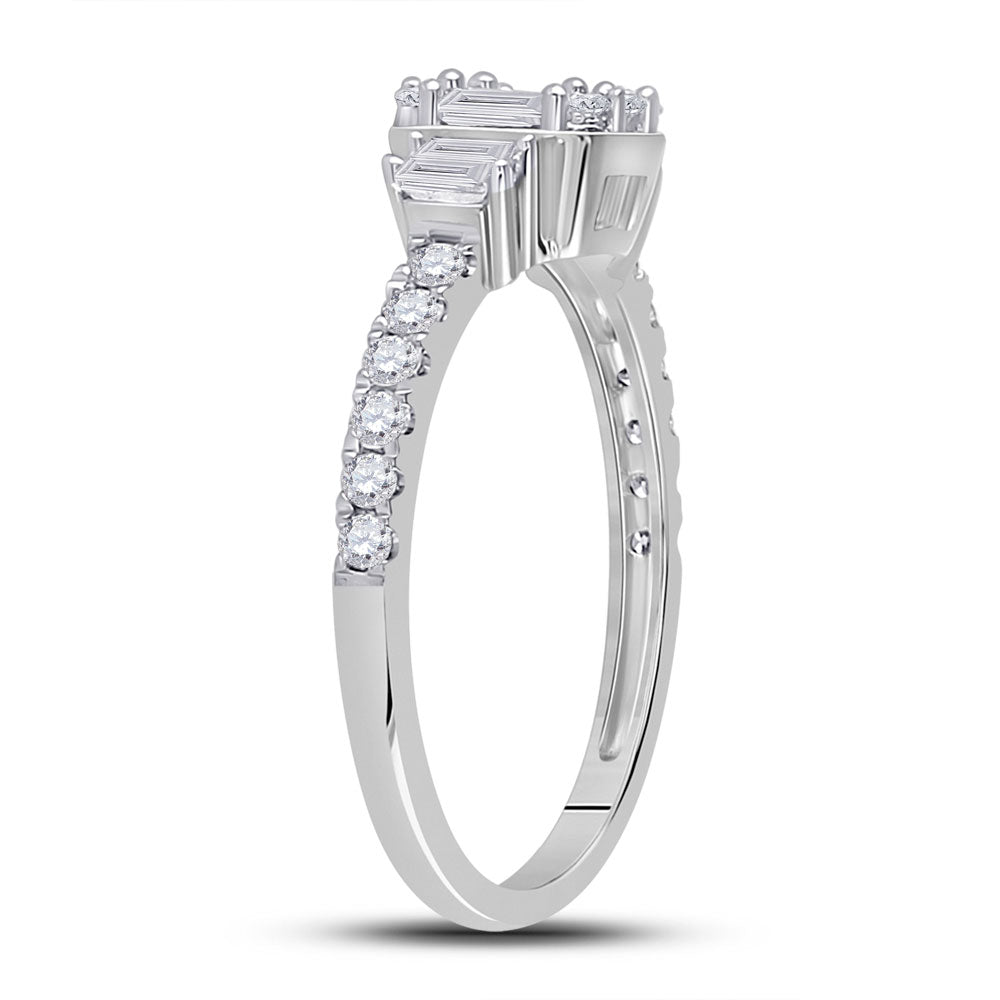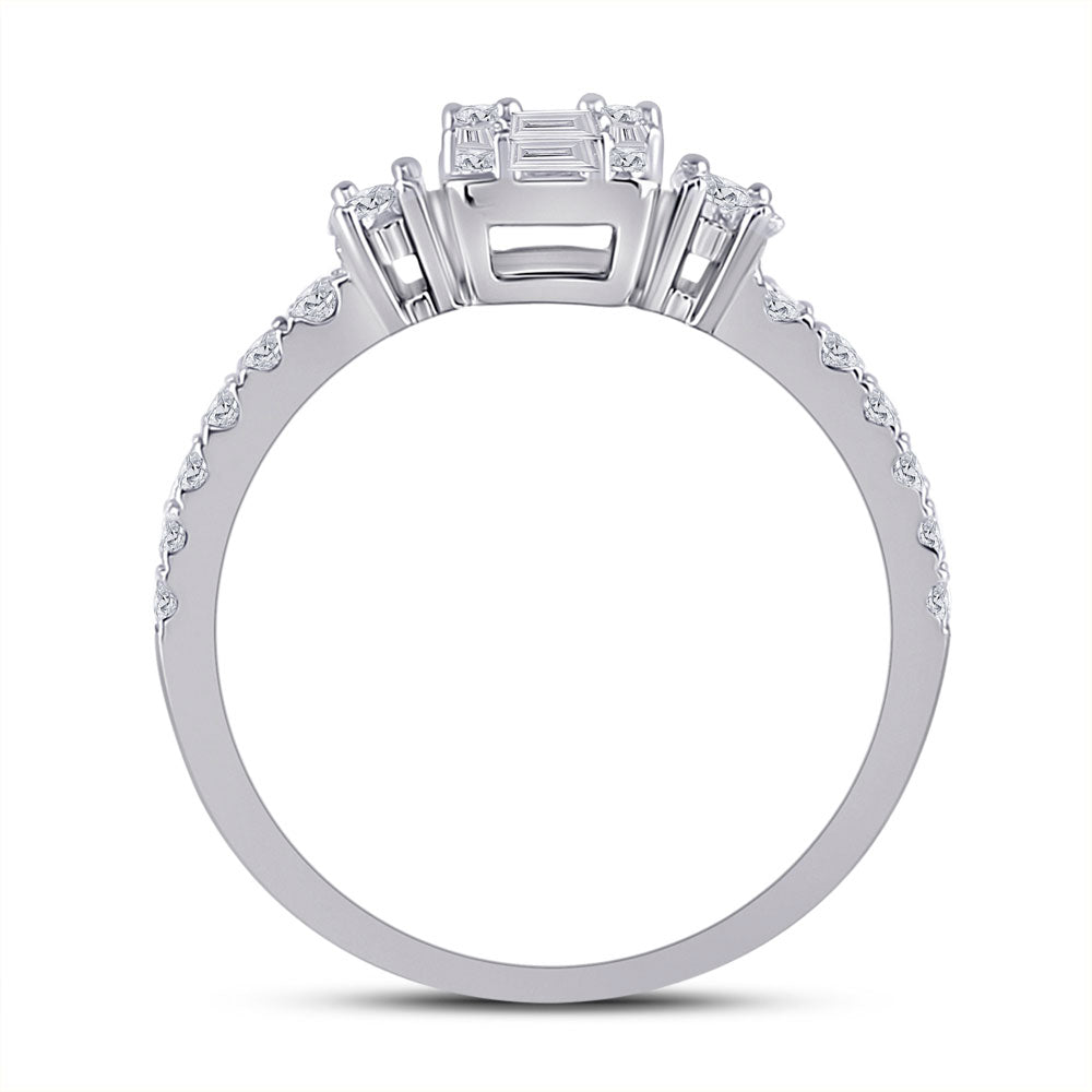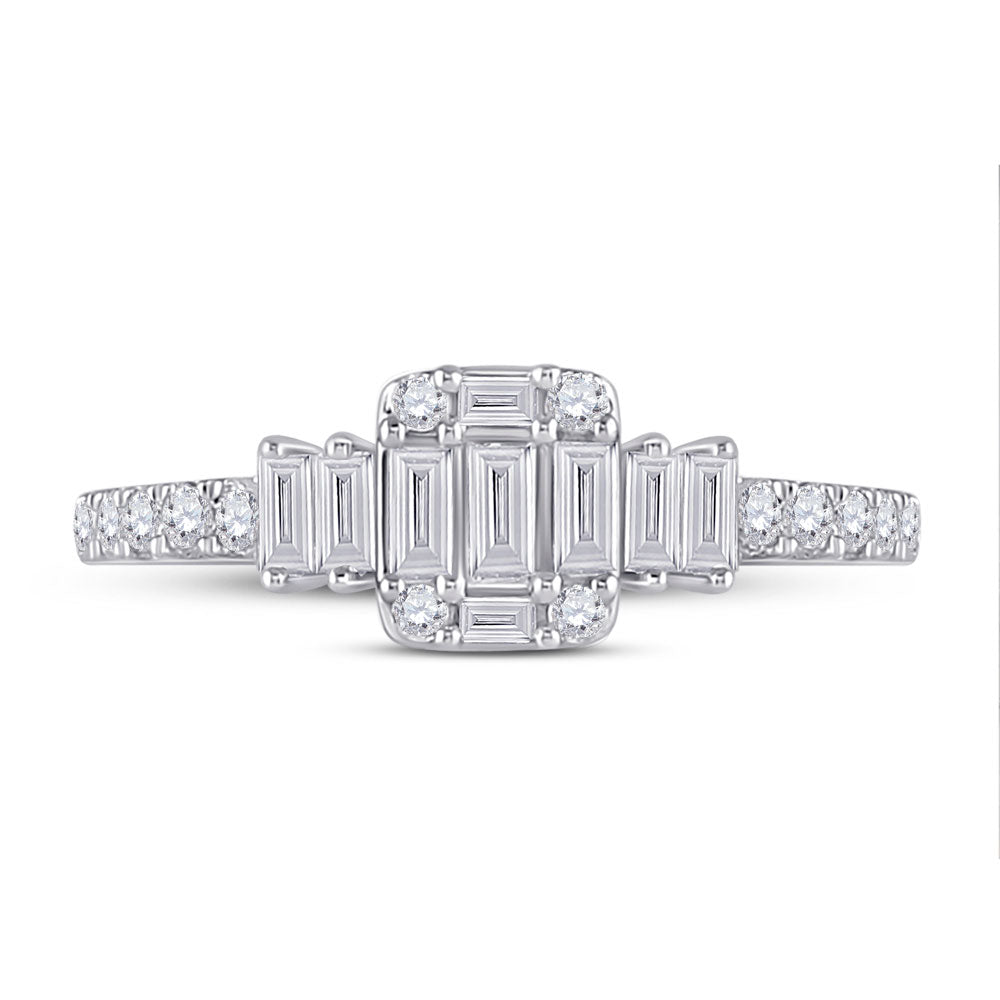 Keene Jewelers 14kt White Gold Womens Baguette Diamond Cluster Ring 5/8 Cttw
