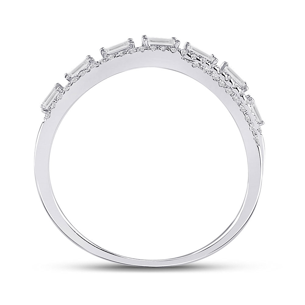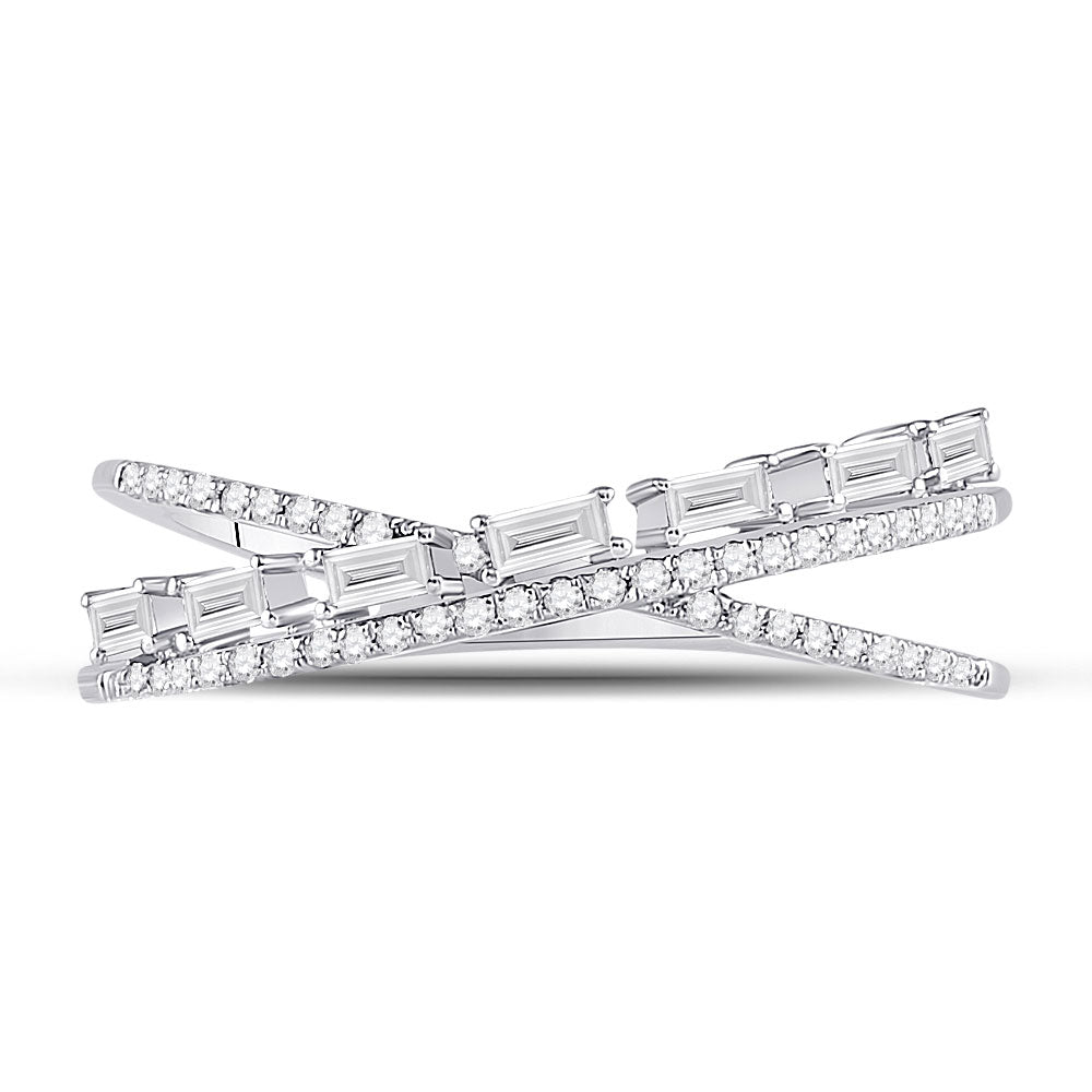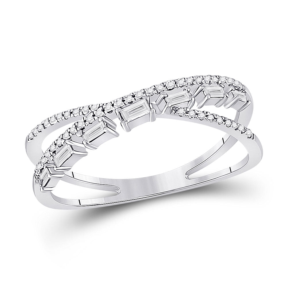 Keene Jewelers 14kt White Gold Womens Baguette Diamond Crossover Band Ring 1/4 Cttw