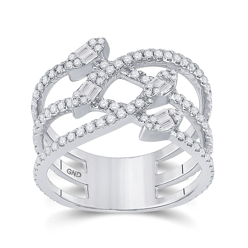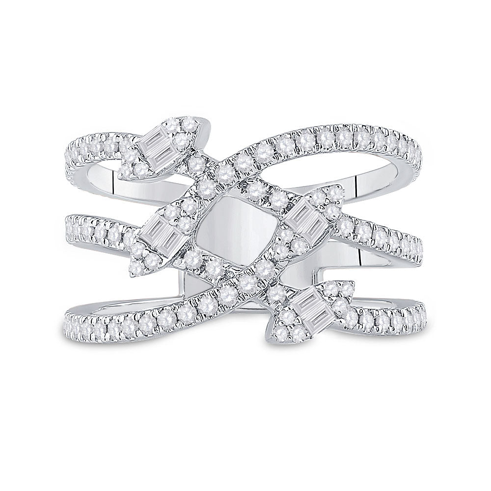 Keene Jewelers 14kt White Gold Womens Baguette Diamond Crossover Strand Band Ring 3/4 Cttw
