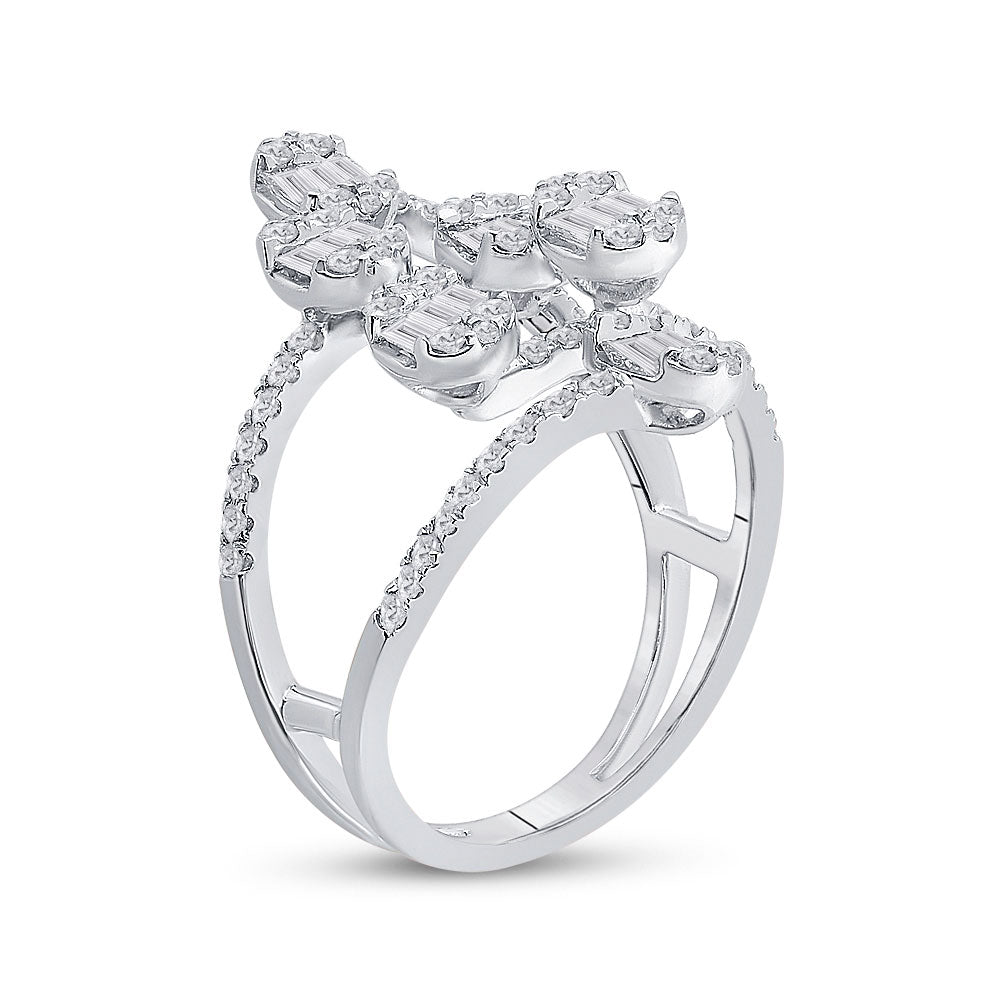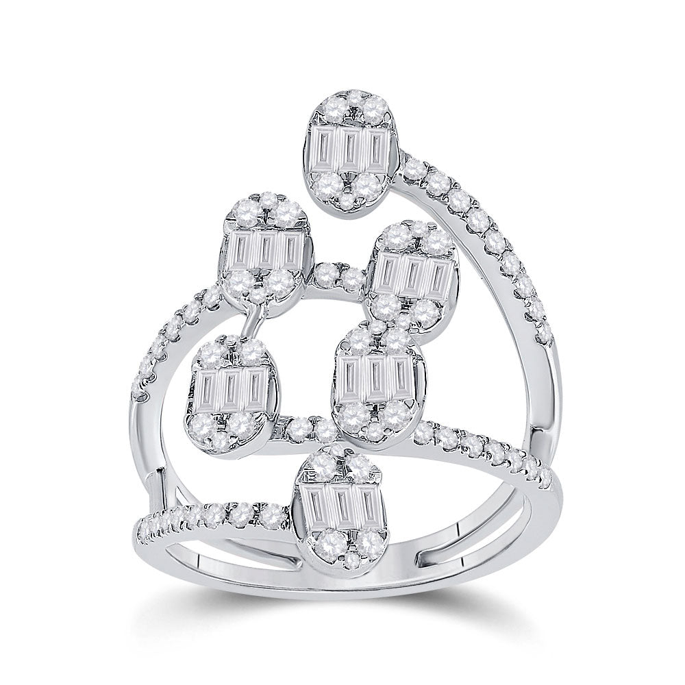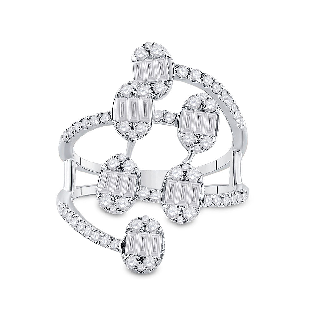 Keene Jewelers 14kt White Gold Womens Baguette Diamond Floating Cluster Ring 1 Cttw