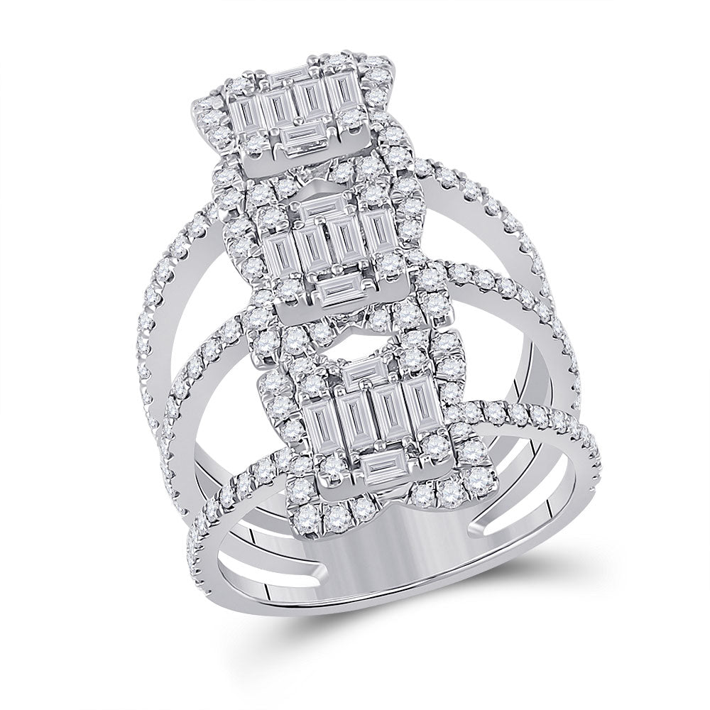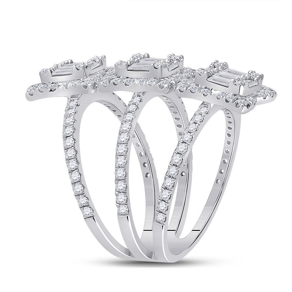 Keene Jewelers 14kt White Gold Womens Baguette Diamond Spiral Fashion Ring 1-7/8 Cttw