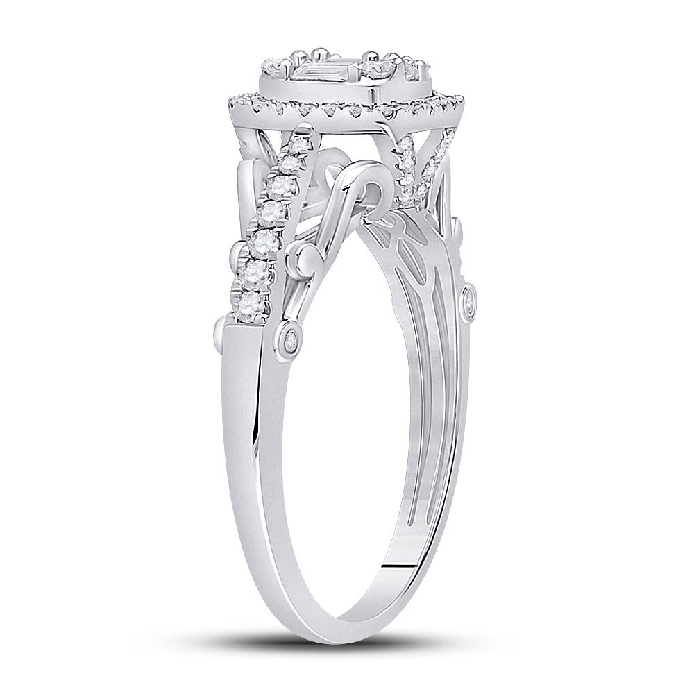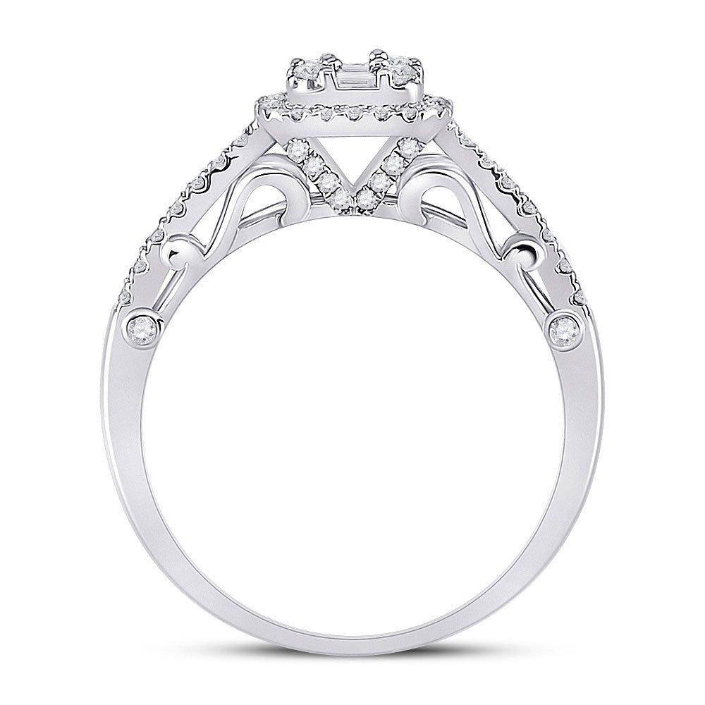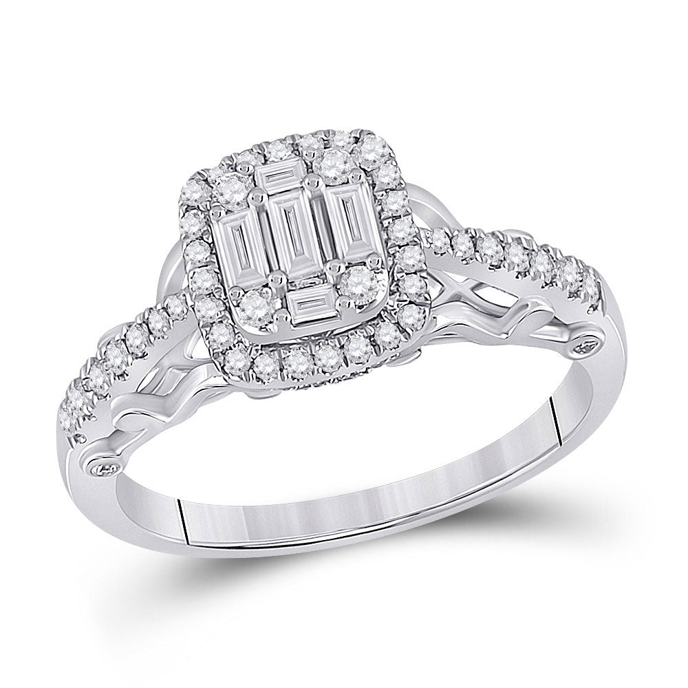 Keene Jewelers 14kt White Gold Womens Baguette Diamond Square Cluster Ring 1/2 Cttw