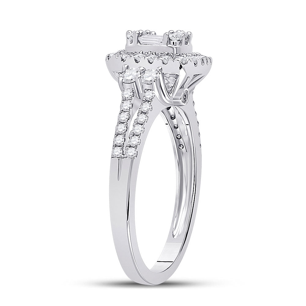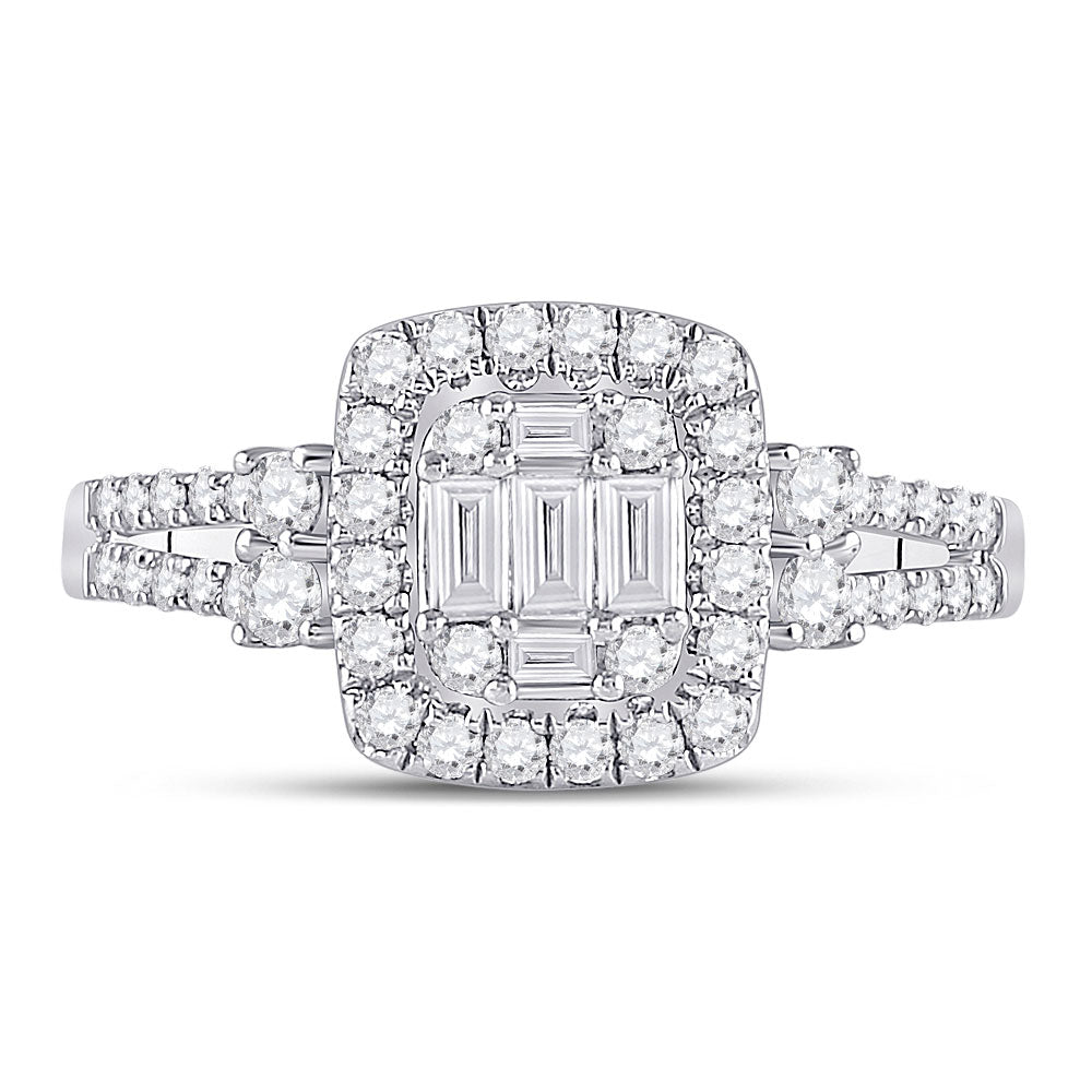Keene Jewelers 14kt White Gold Womens Baguette Diamond Square Cluster Ring 3/4 Cttw