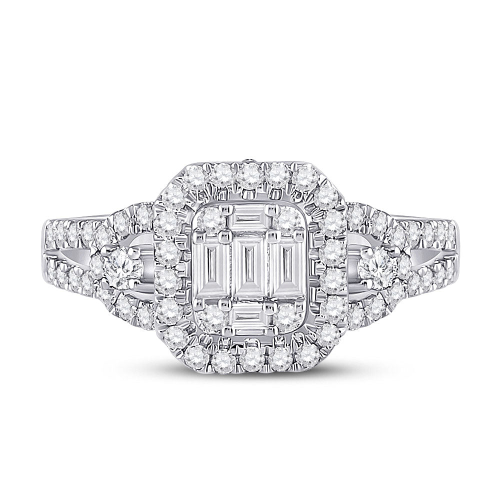 Keene Jewelers 14kt White Gold Womens Baguette Diamond Square Cluster Ring 3/4 Cttw