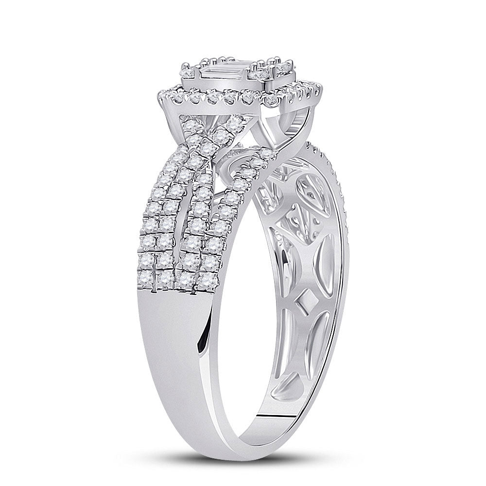 Keene Jewelers 14kt White Gold Womens Baguette Diamond Square Cluster Ring 3/4 Cttw