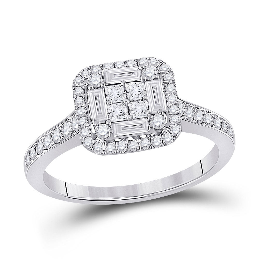 Keene Jewelers 14kt White Gold Womens Baguette Diamond Square Cluster Ring 3/4 Cttw