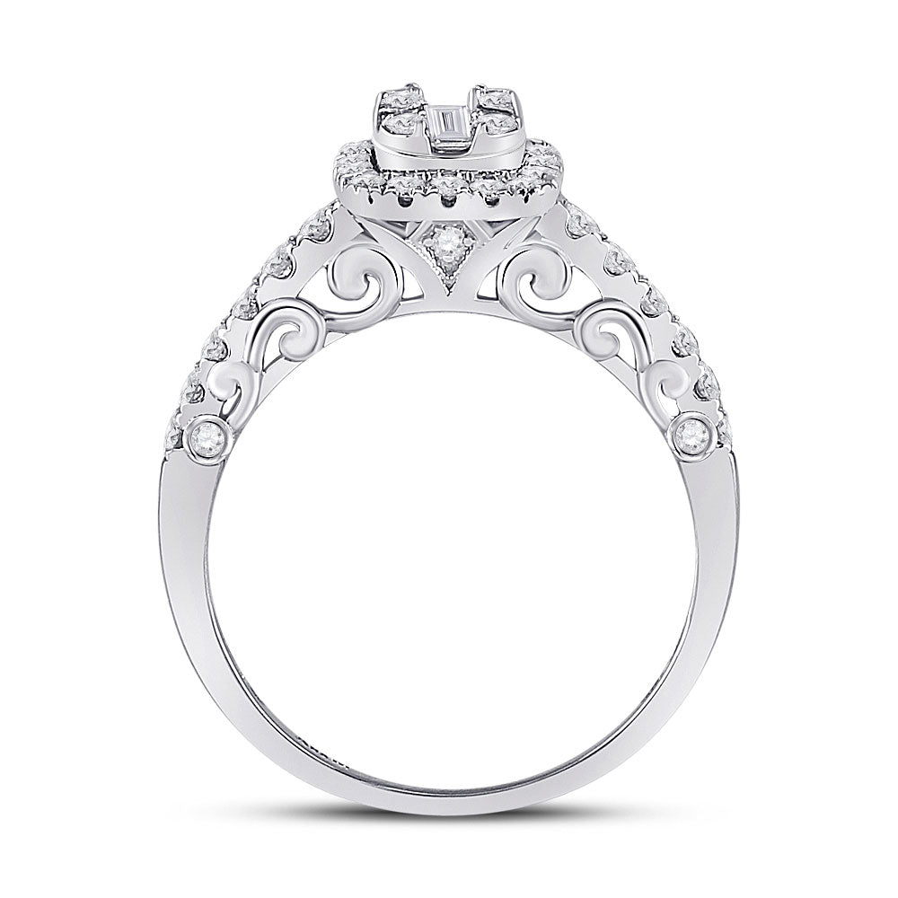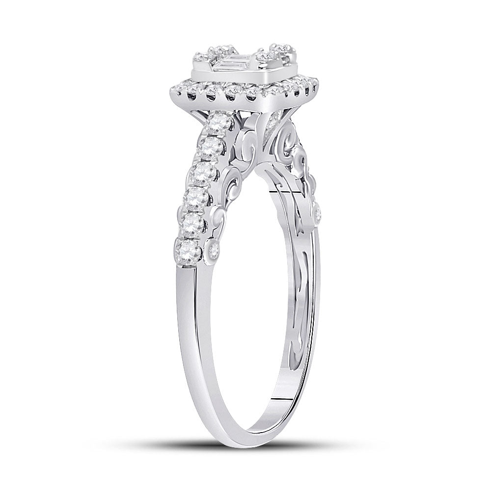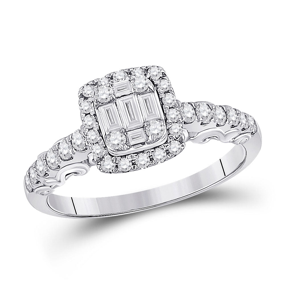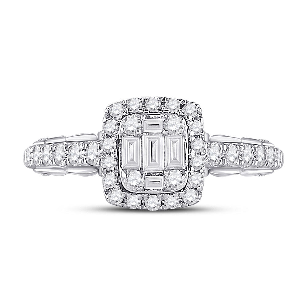 Keene Jewelers 14kt White Gold Womens Baguette Diamond Square Cluster Ring 5/8 Cttw