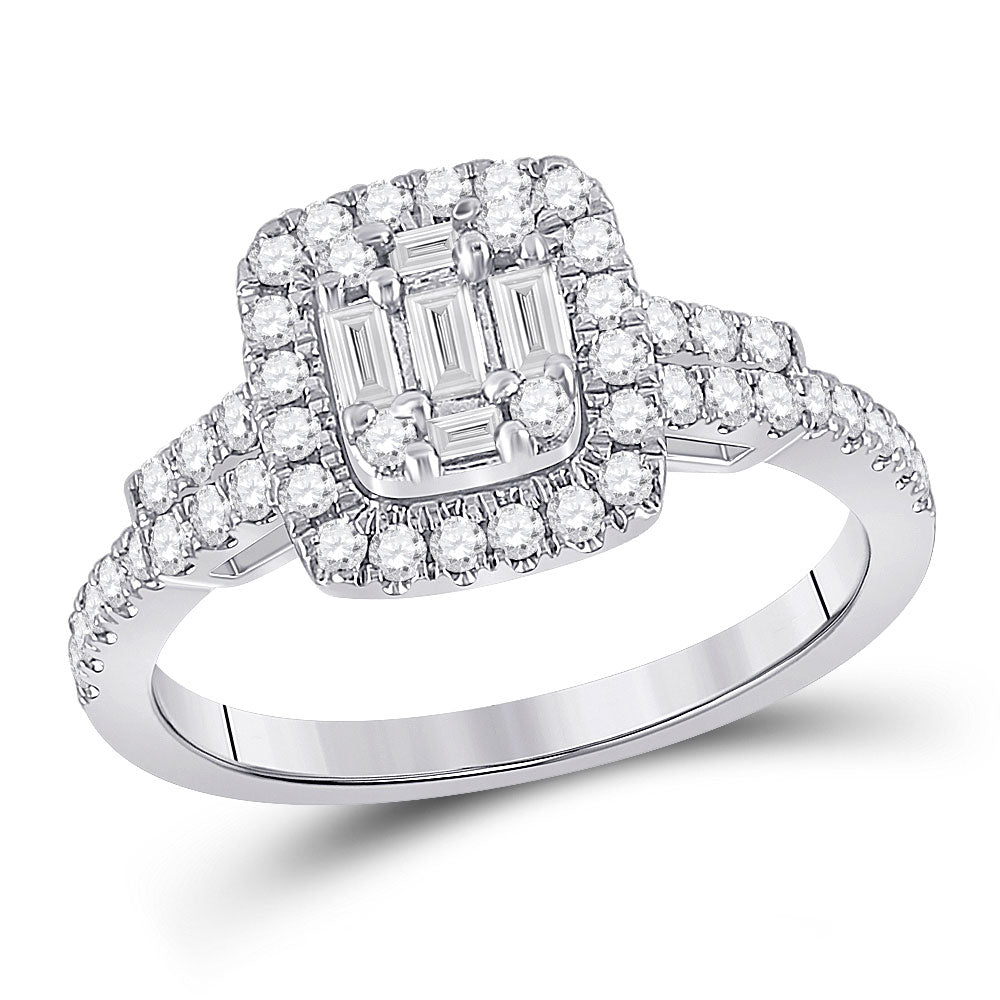 Keene Jewelers 14kt White Gold Womens Baguette Diamond Square Ring 3/4 Cttw
