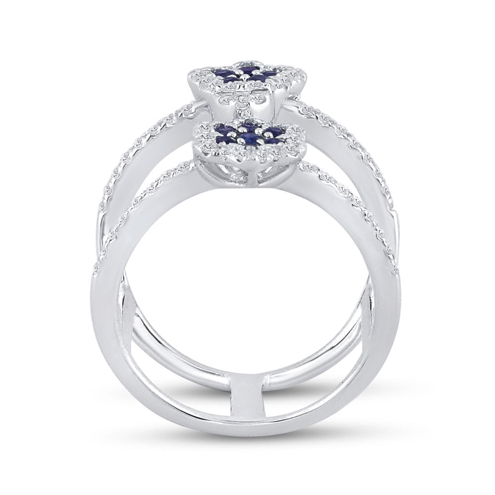 Keene Jewelers 14kt White Gold Womens Round Blue Sapphire Diamond Negative Space Band Ring 1 Cttw