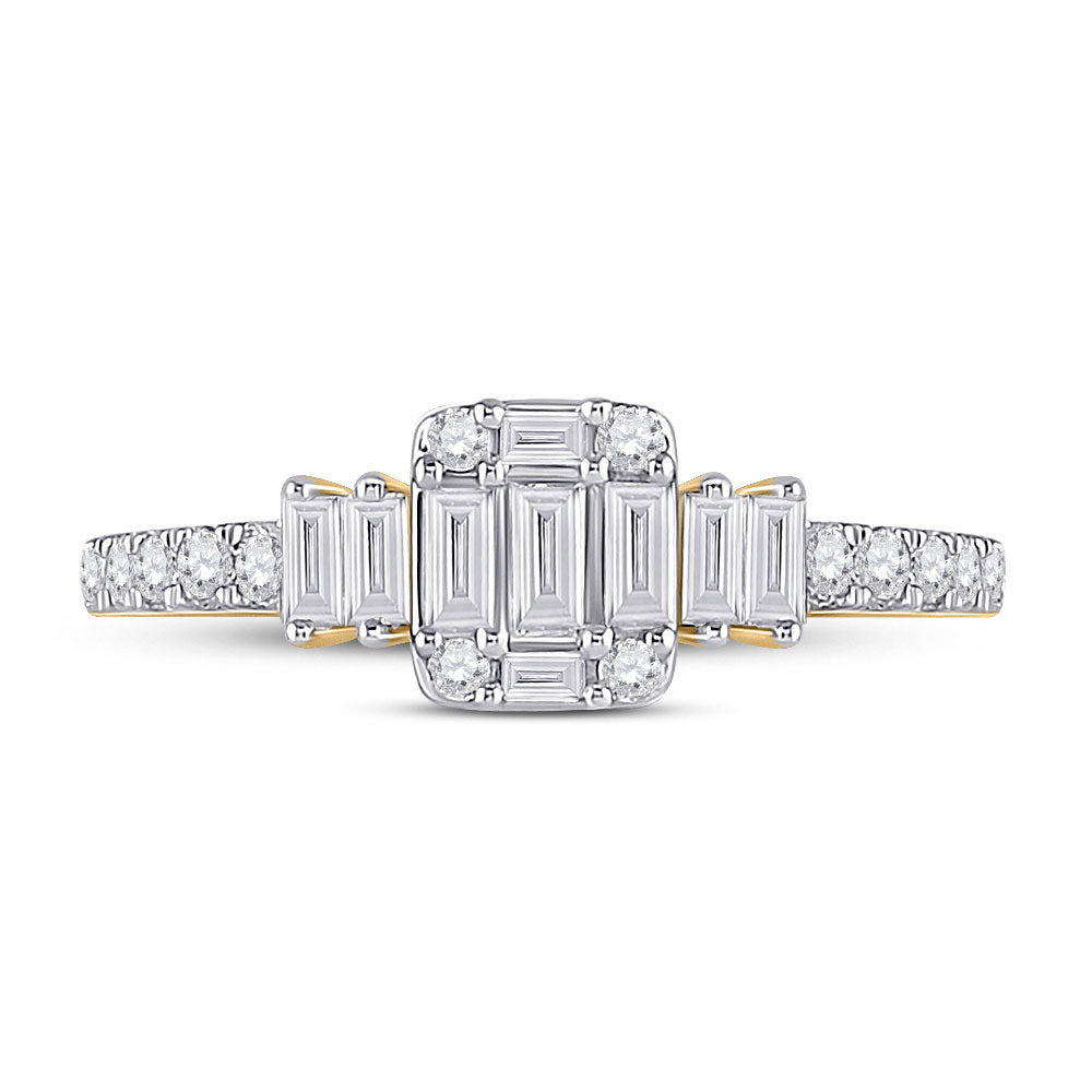 Keene Jewelers 14kt Yellow Gold Womens Baguette Diamond Cluster Ring 5/8 Cttw