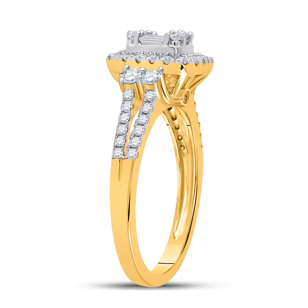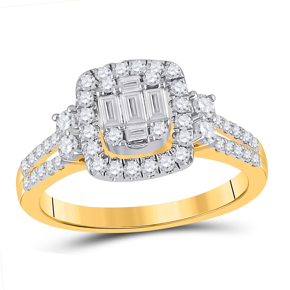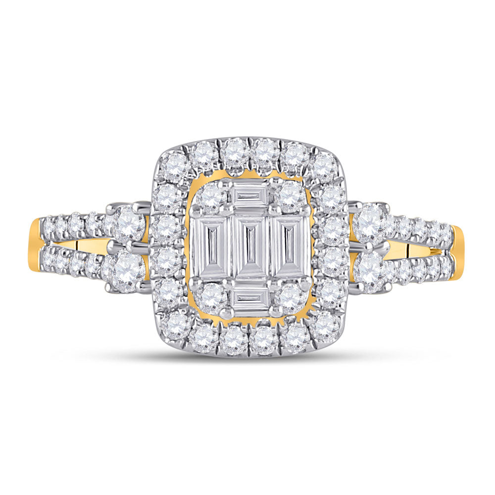Keene Jewelers 14kt Yellow Gold Womens Baguette Diamond Square Cluster Ring 3/4 Cttw