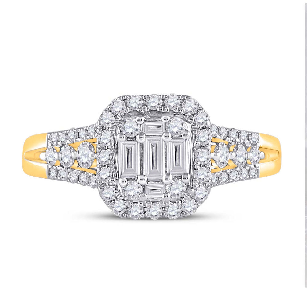 Keene Jewelers 14kt Yellow Gold Womens Baguette Diamond Square Cluster Ring 3/4 Cttw