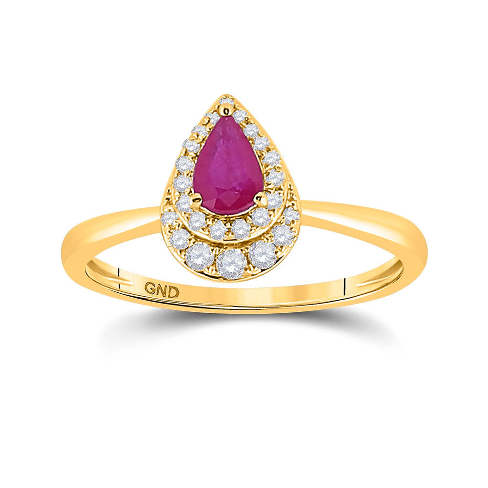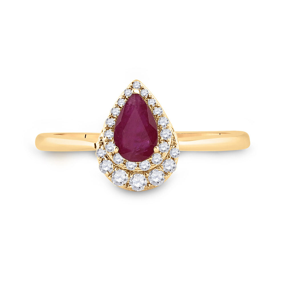 Keene Jewelers 14kt Yellow Gold Womens Pear Ruby Diamond Halo Solitaire Ring 3/4 Cttw