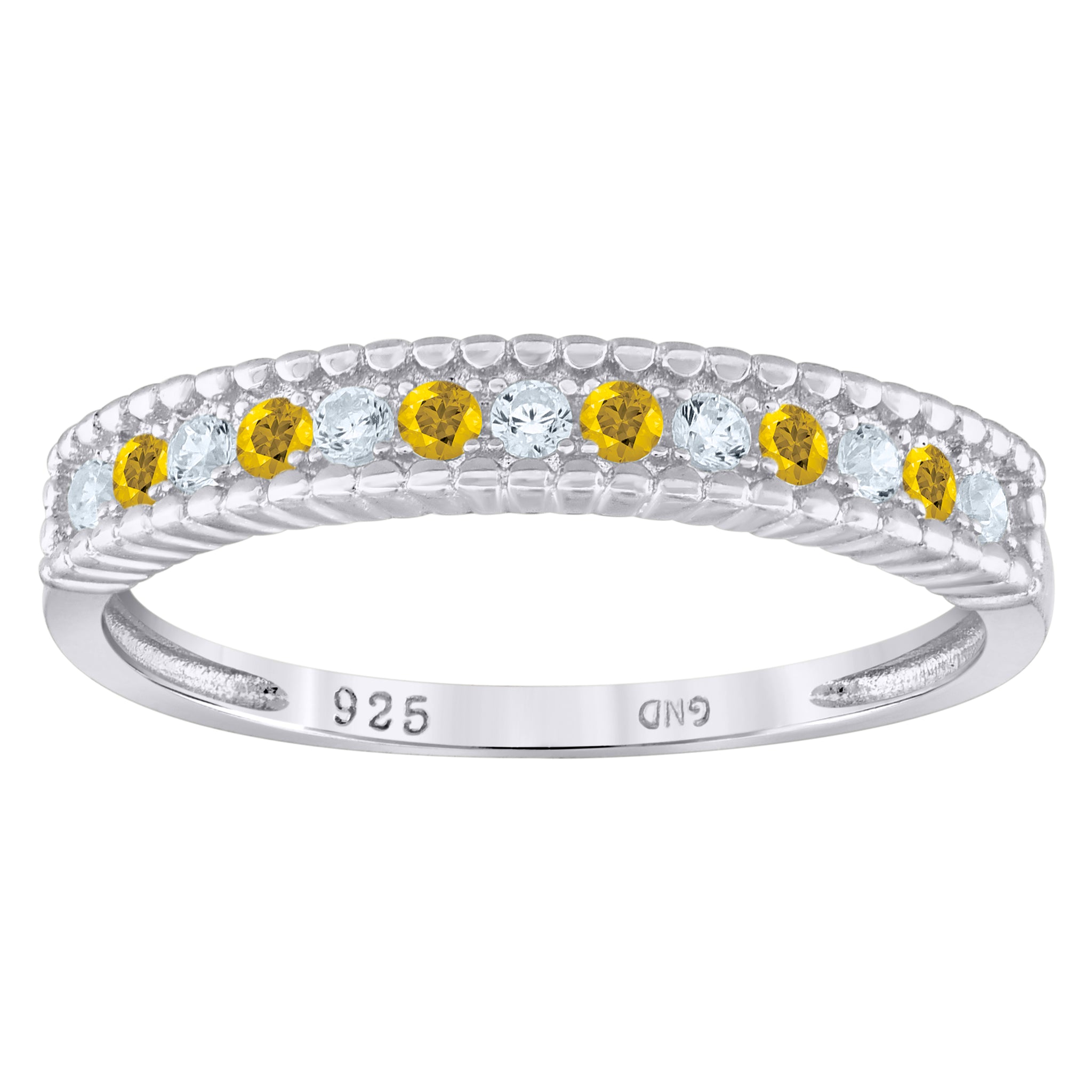 Keene Jewelers 925 Sterling Silver Womens White Yellow Cubic Zirconia Semi Eternity Stackable Wedding Band Ring Size 6