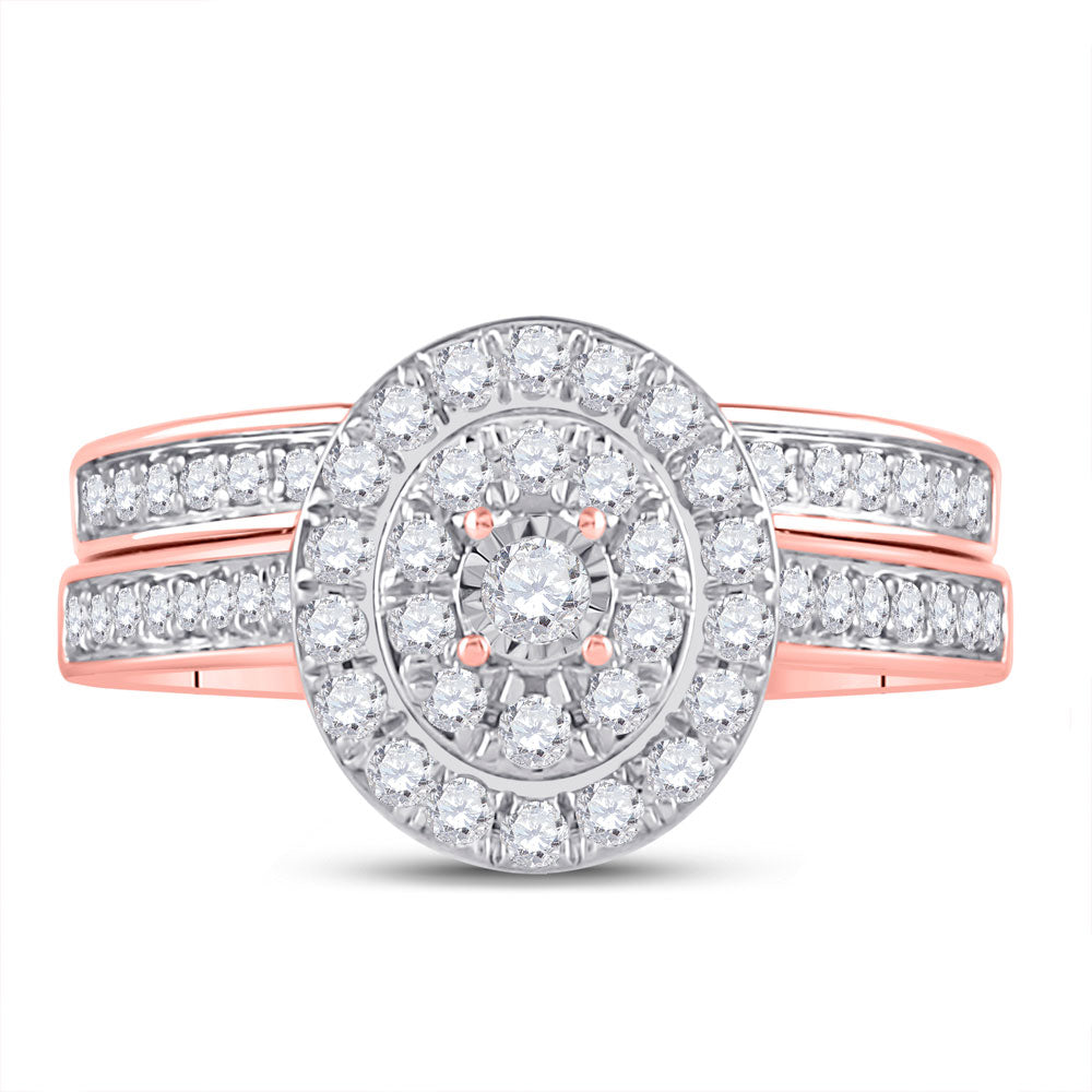 Keene Jewelers 10kt Rose Gold Round Diamond Oval Bridal Wedding Ring Band Set 1/2 Cttw
