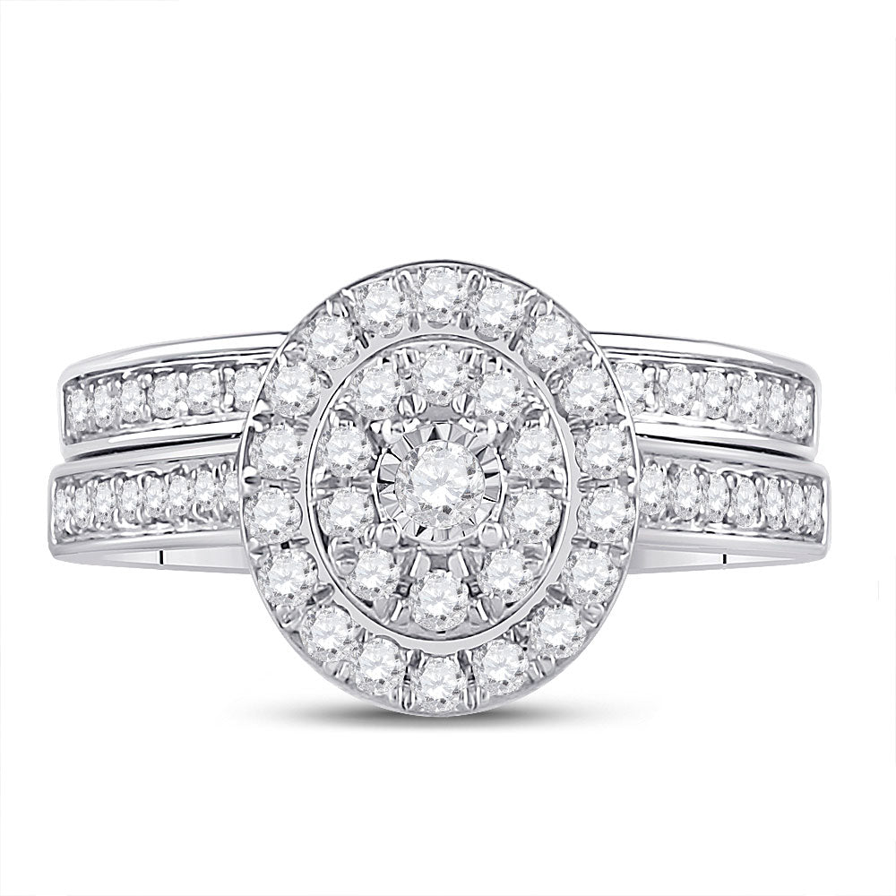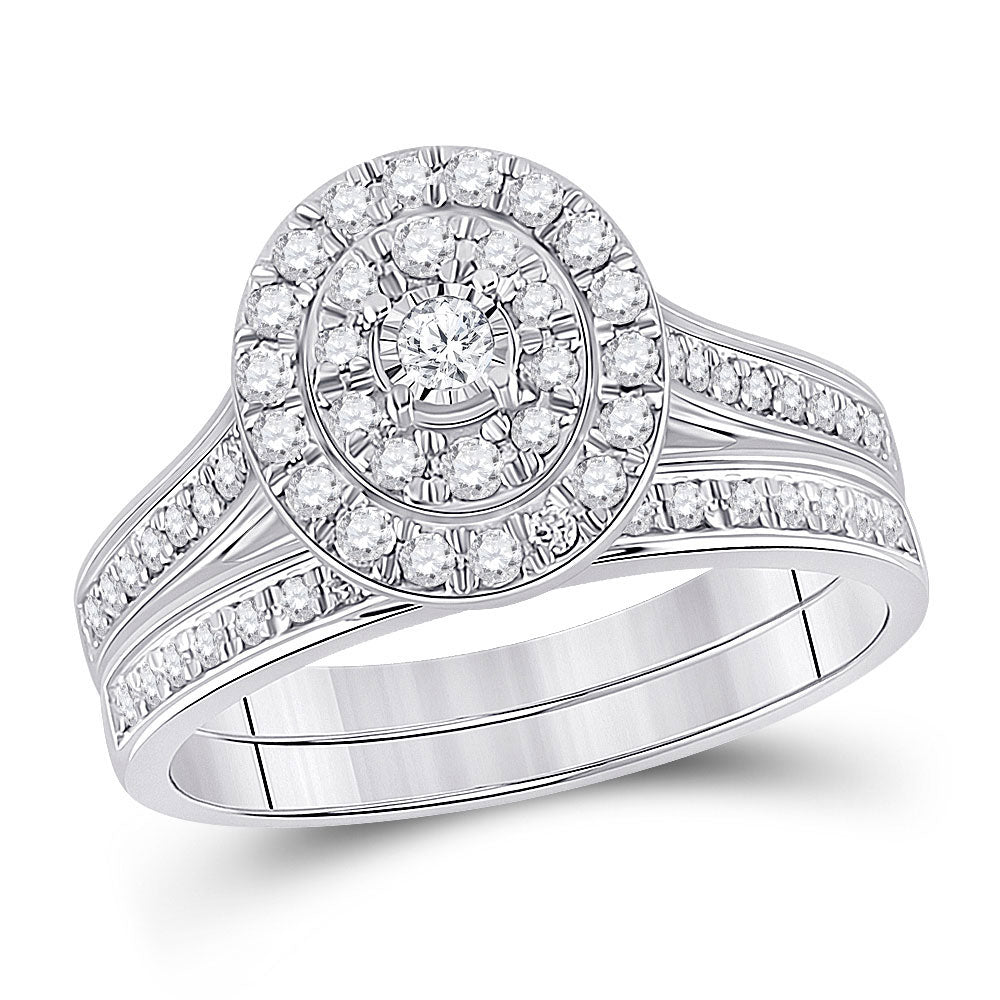 Keene Jewelers 10kt White Gold Round Diamond Bridal Wedding Ring Band Set 1/2 Cttw