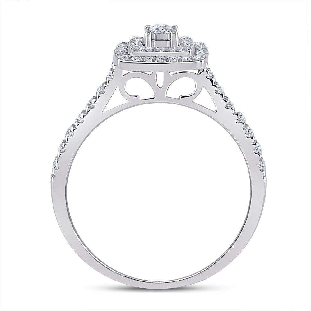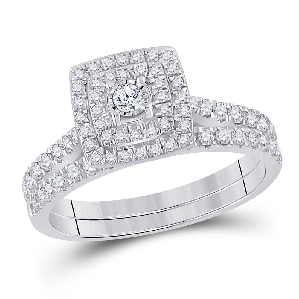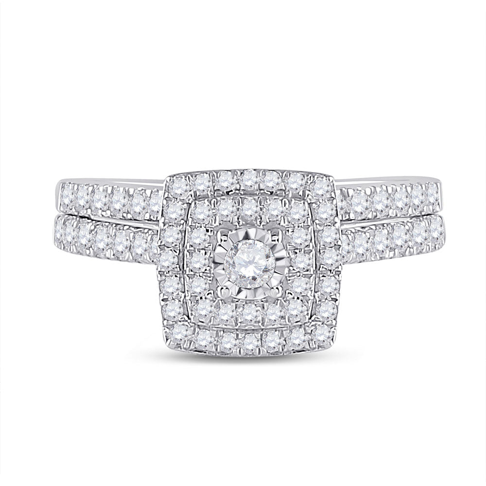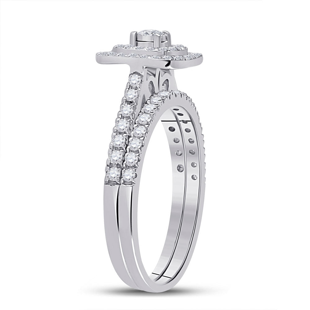 Keene Jewelers 10kt White Gold Round Diamond Halo Bridal Wedding Ring Band Set 1/2 Cttw