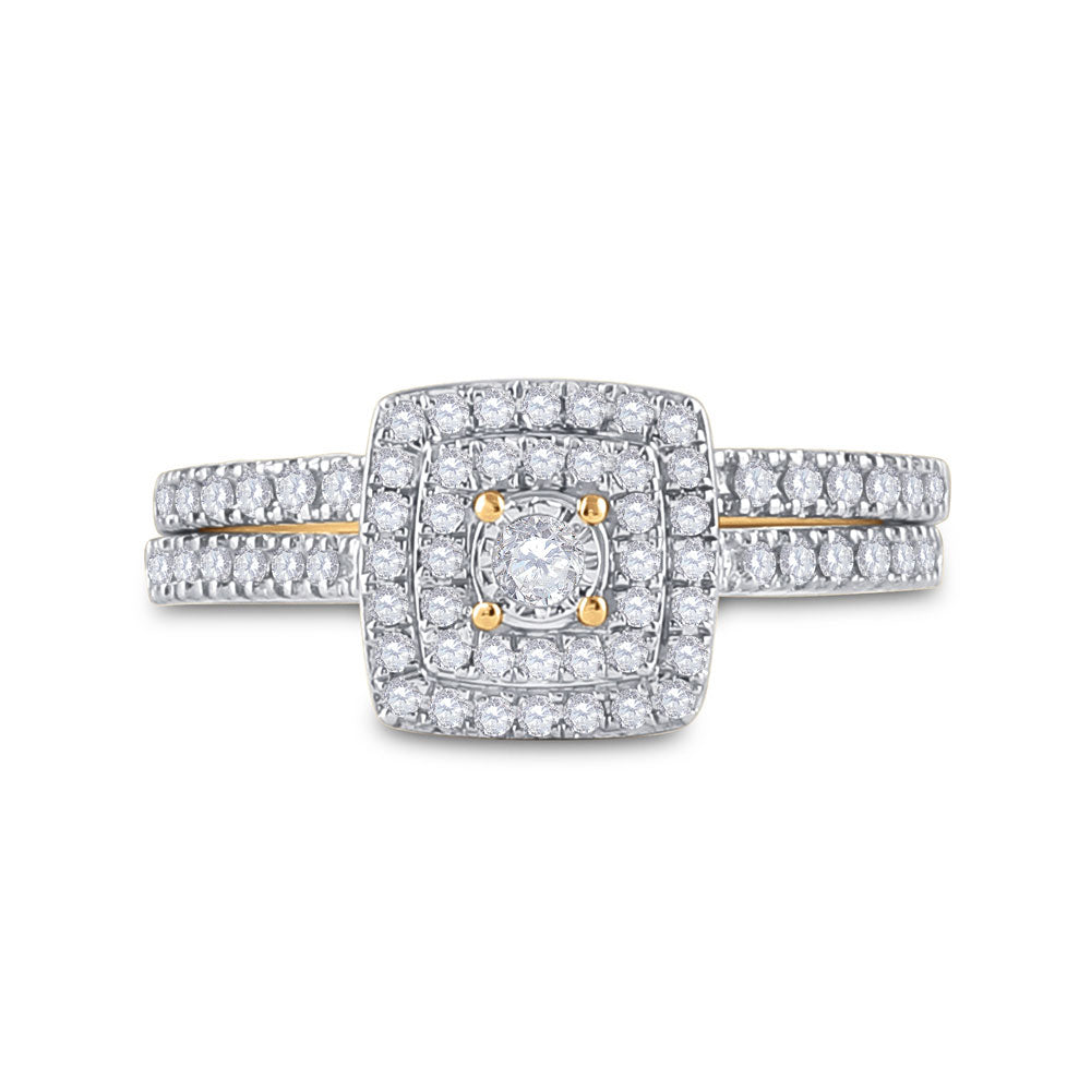 Keene Jewelers 10kt Yellow Gold Round Diamond Halo Bridal Wedding Ring Band Set 1/2 Cttw