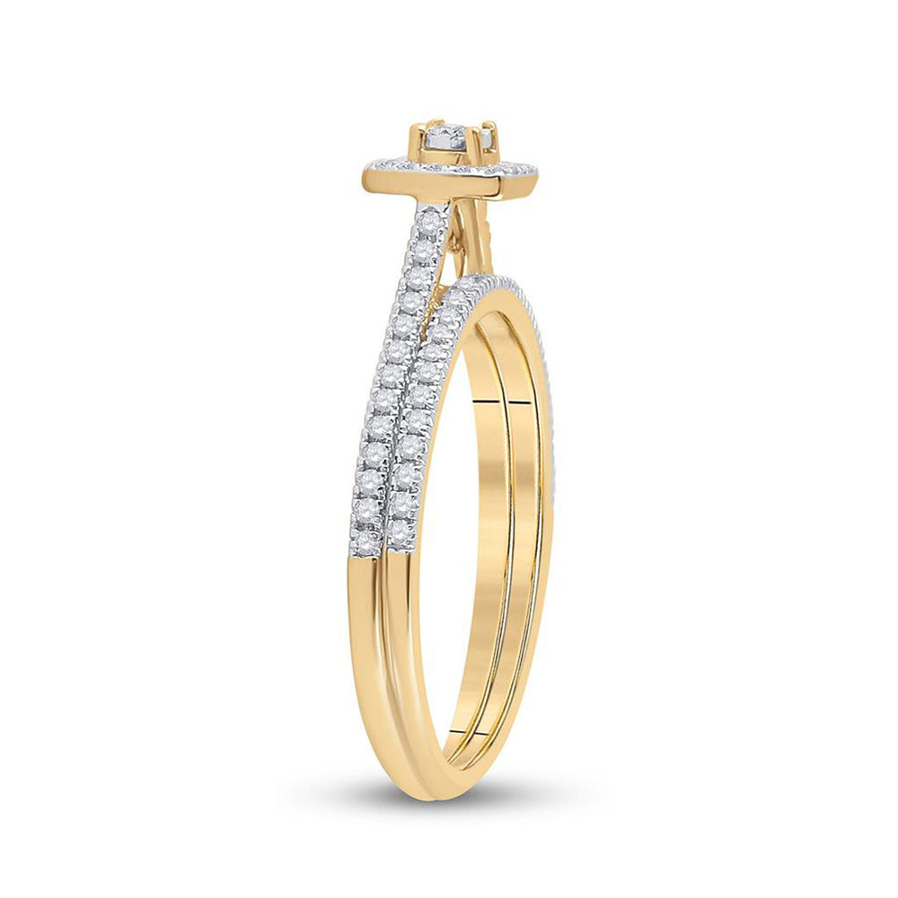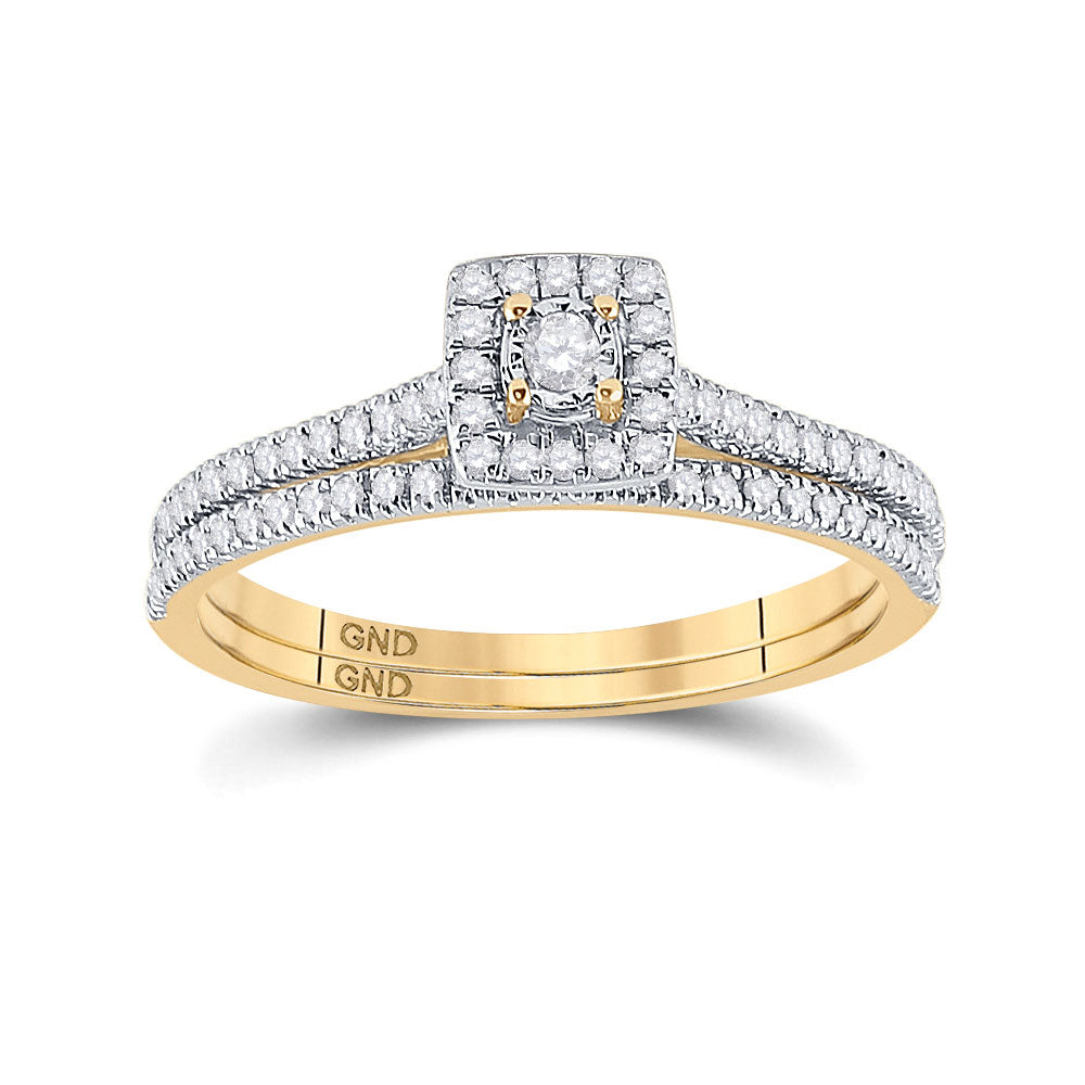 Keene Jewelers 10kt Yellow Gold Round Diamond Halo Bridal Wedding Ring Band Set 1/4 Cttw