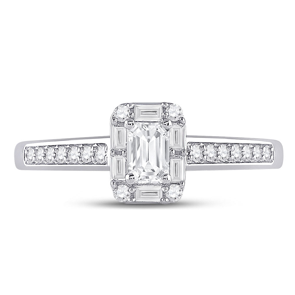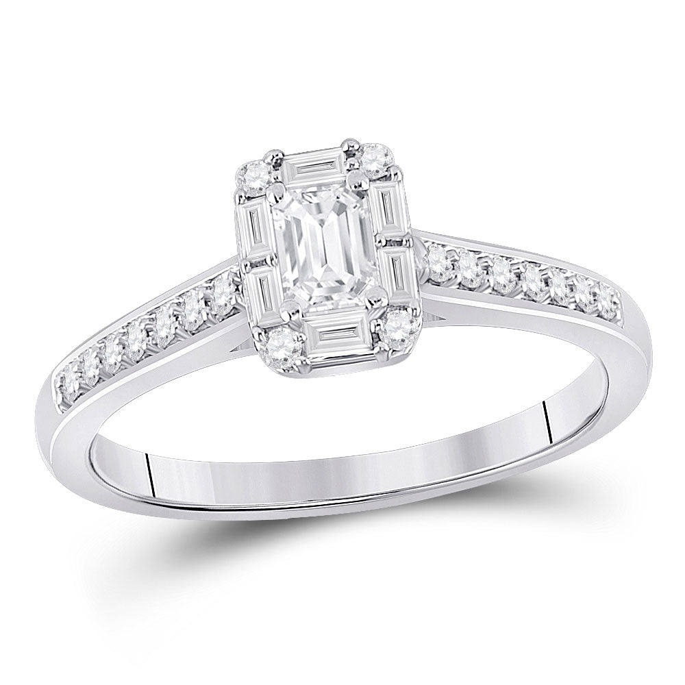 Keene Jewelers 14kt White Gold Emerald Diamond Halo Bridal Wedding Engagement Ring 1/2 Cttw