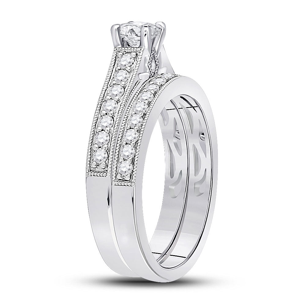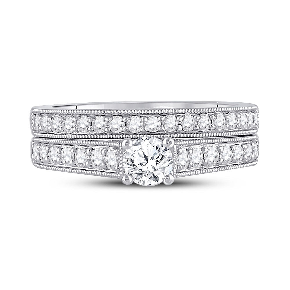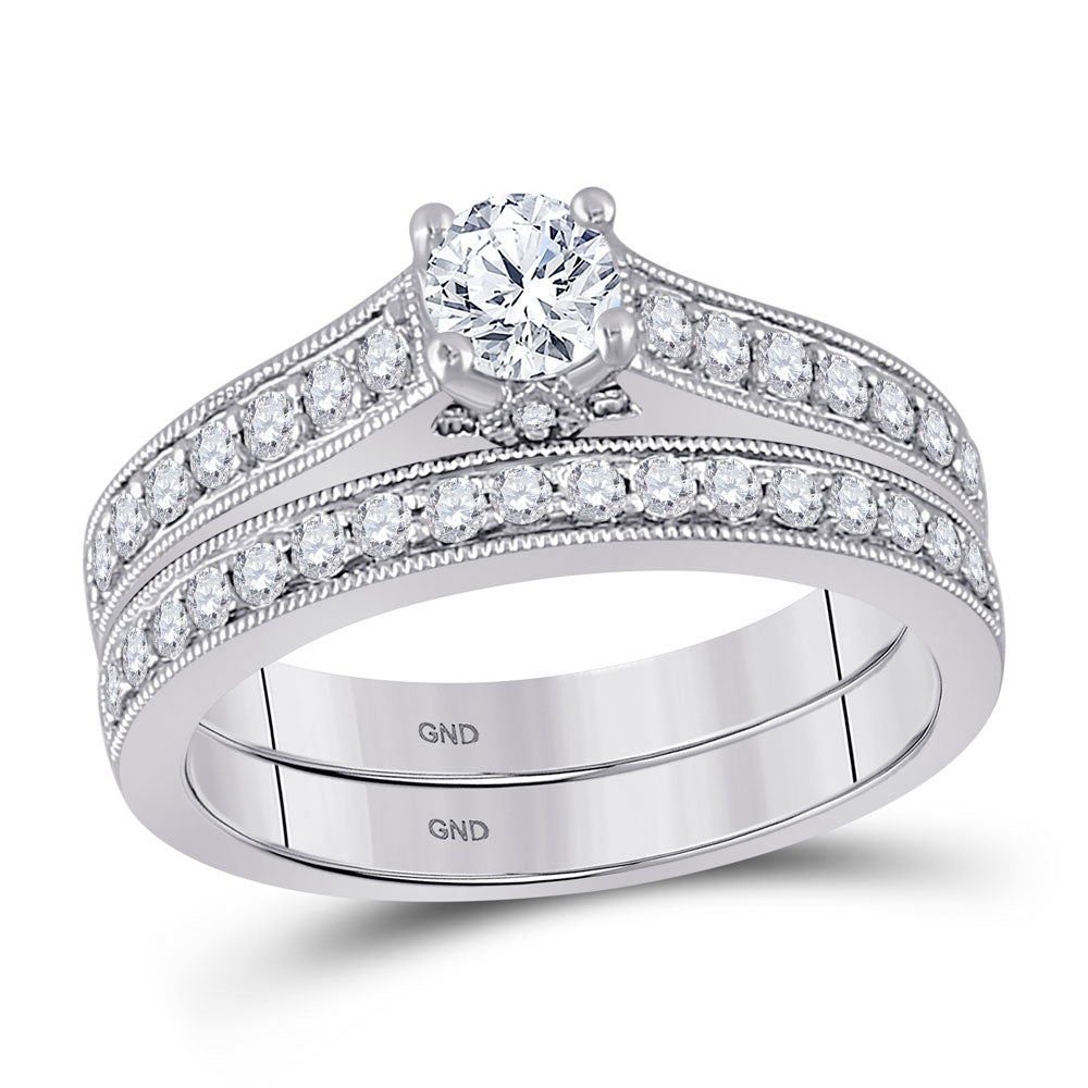 Keene Jewelers 14kt White Gold Round Diamond Bridal Wedding Ring Band Set 3/4 Cttw