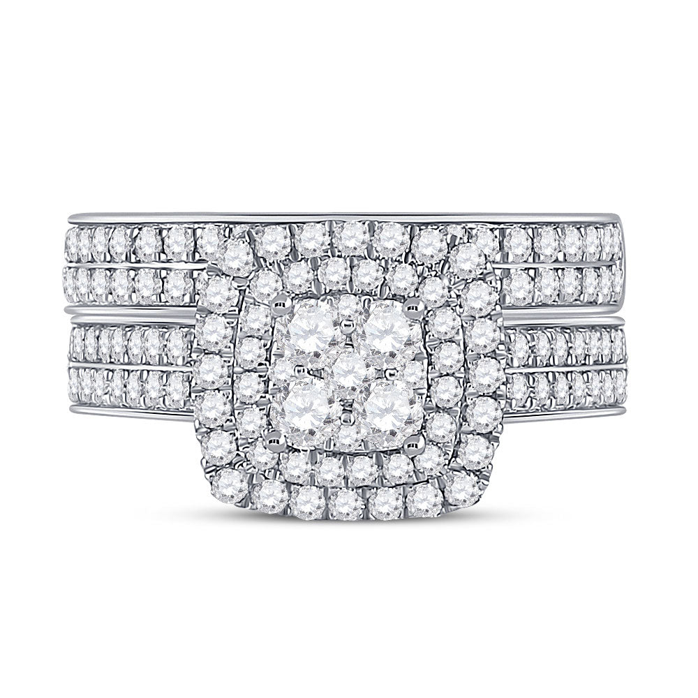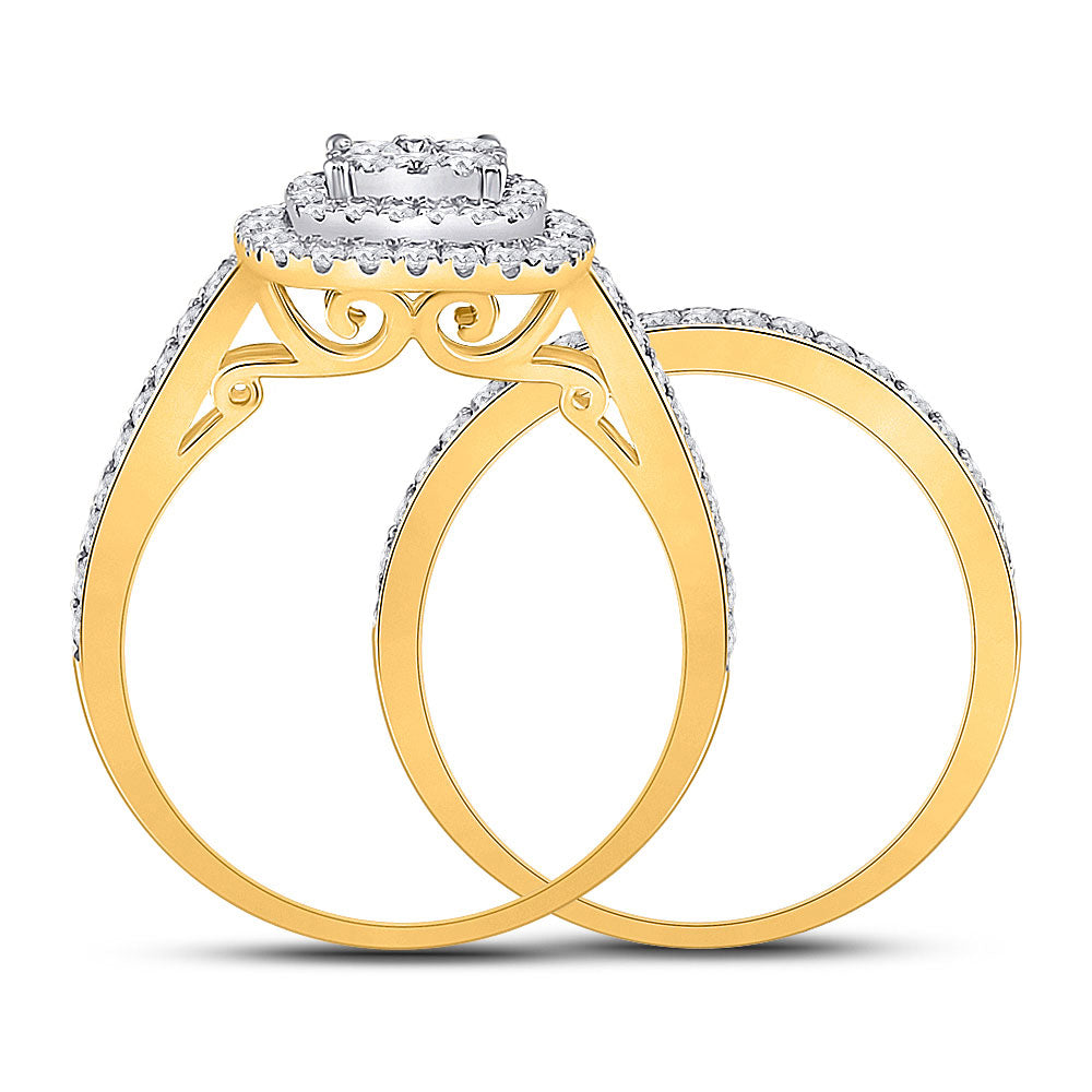 Keene Jewelers 14kt Yellow Gold Round Diamond Square Bridal Wedding Ring Band Set 1-3/8 Cttw