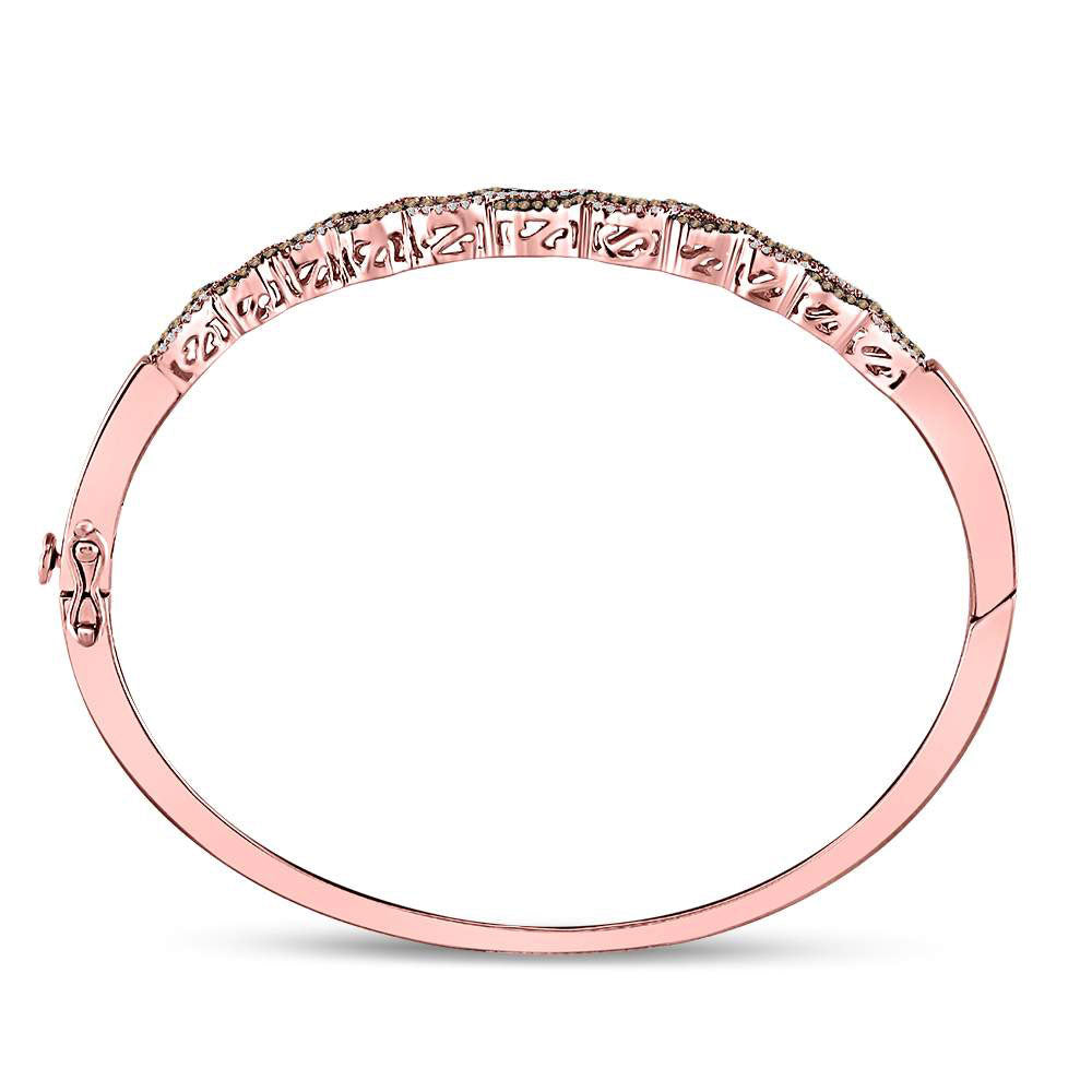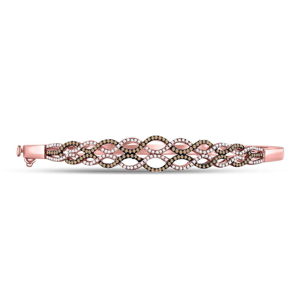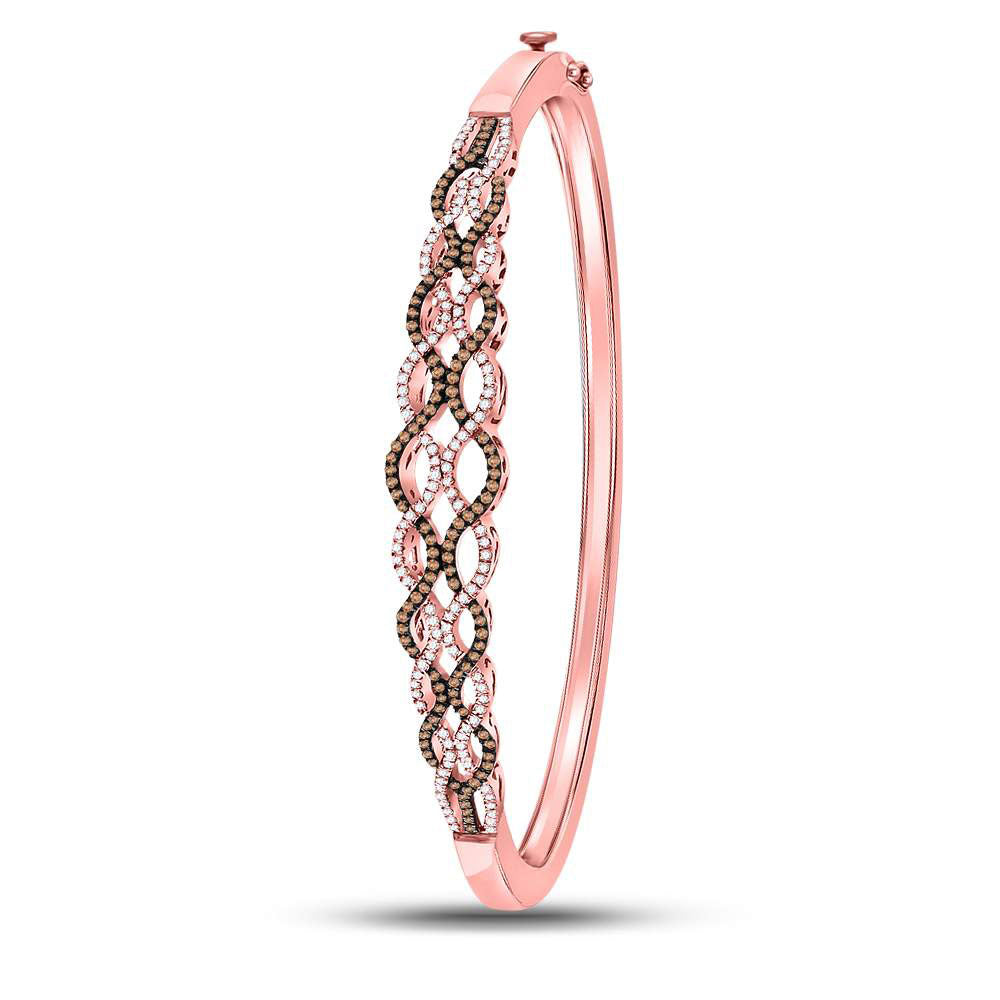 Keene Jewelers 10kt Rose Gold Womens Round Brown Diamond Braided Bangle Bracelet 3/4 Cttw