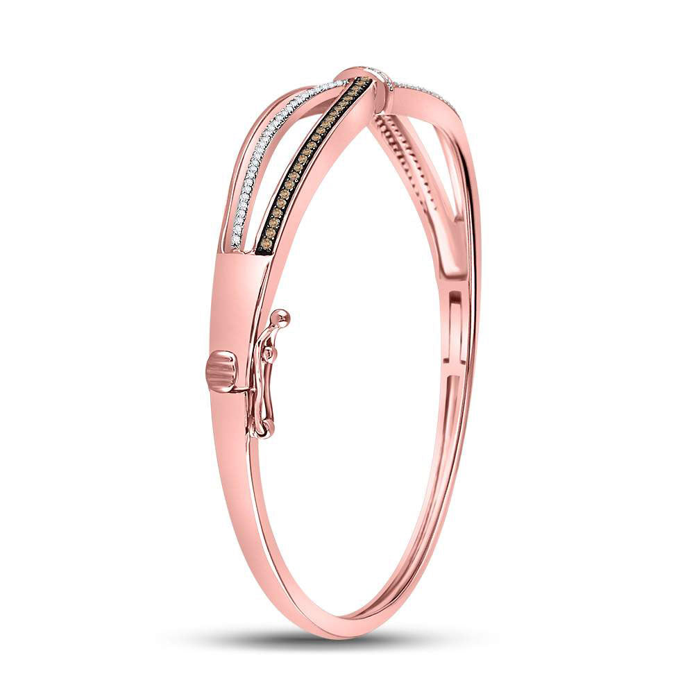 Keene Jewelers 10kt Rose Gold Womens Round Brown Diamond Fashion Bangle Bracelet 1/2 Cttw