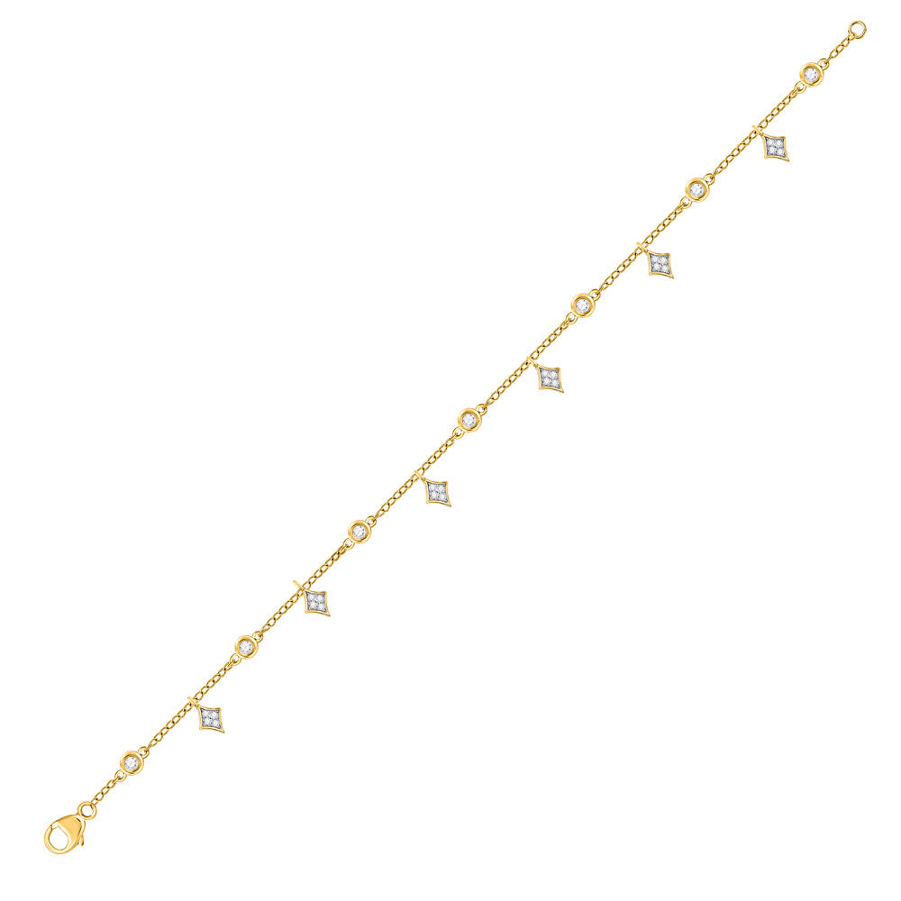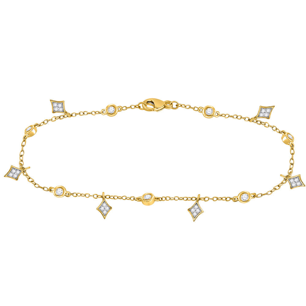 Keene Jewelers 10kt Yellow Gold Womens Round Diamond Dangle Fashion Bracelet 1/3 Cttw