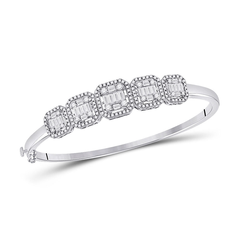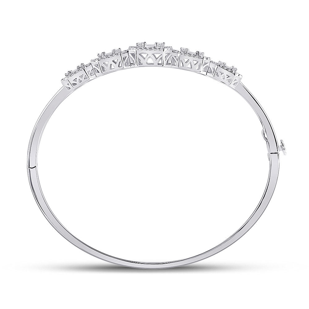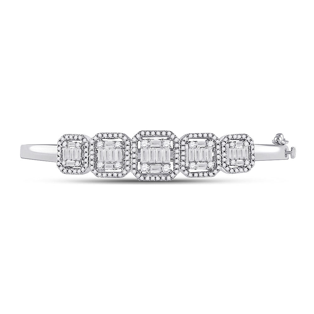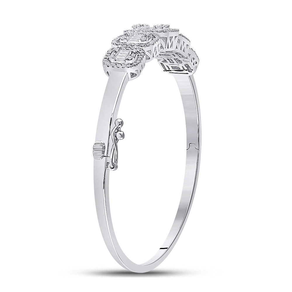 Keene Jewelers 14kt White Gold Womens Baguette Diamond Bangle Bracelet 1-5/8 Cttw