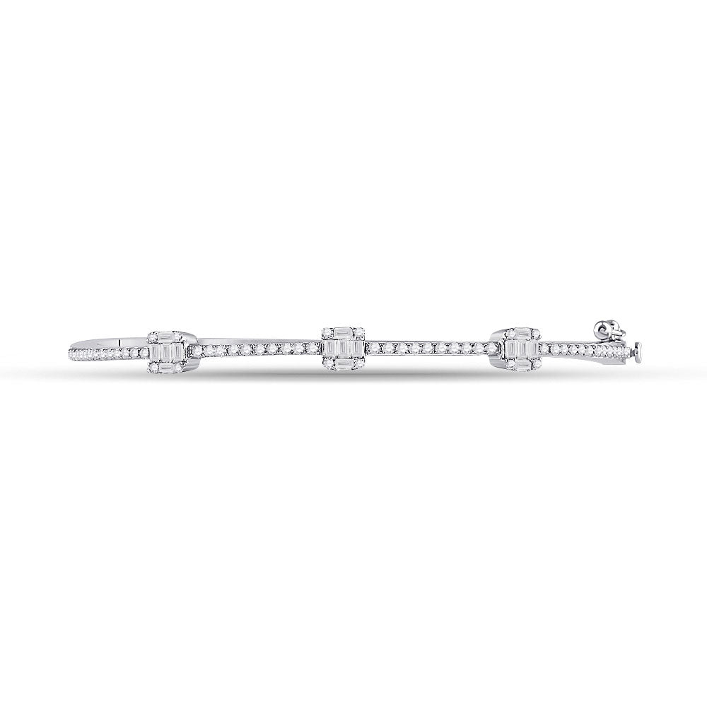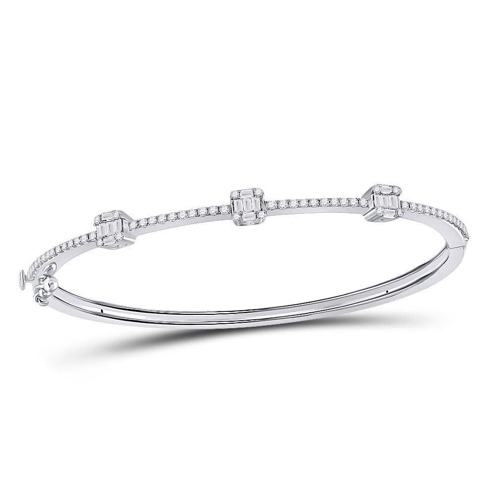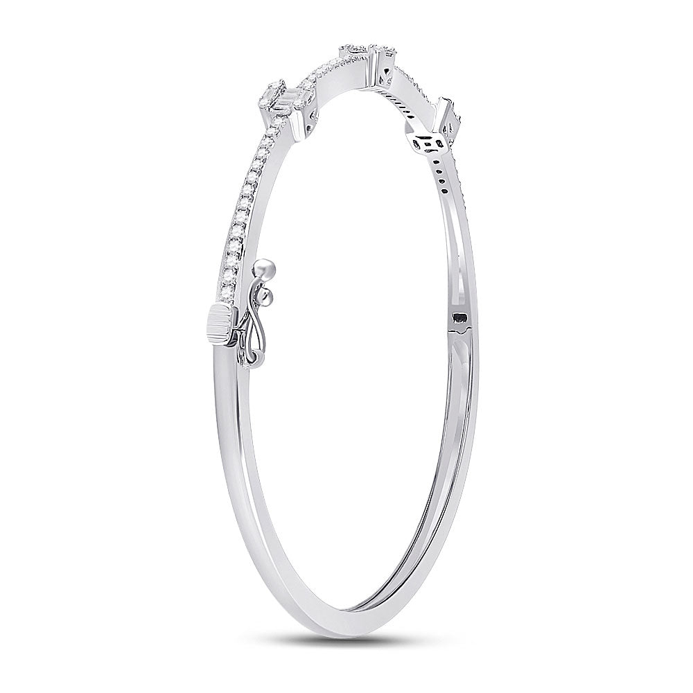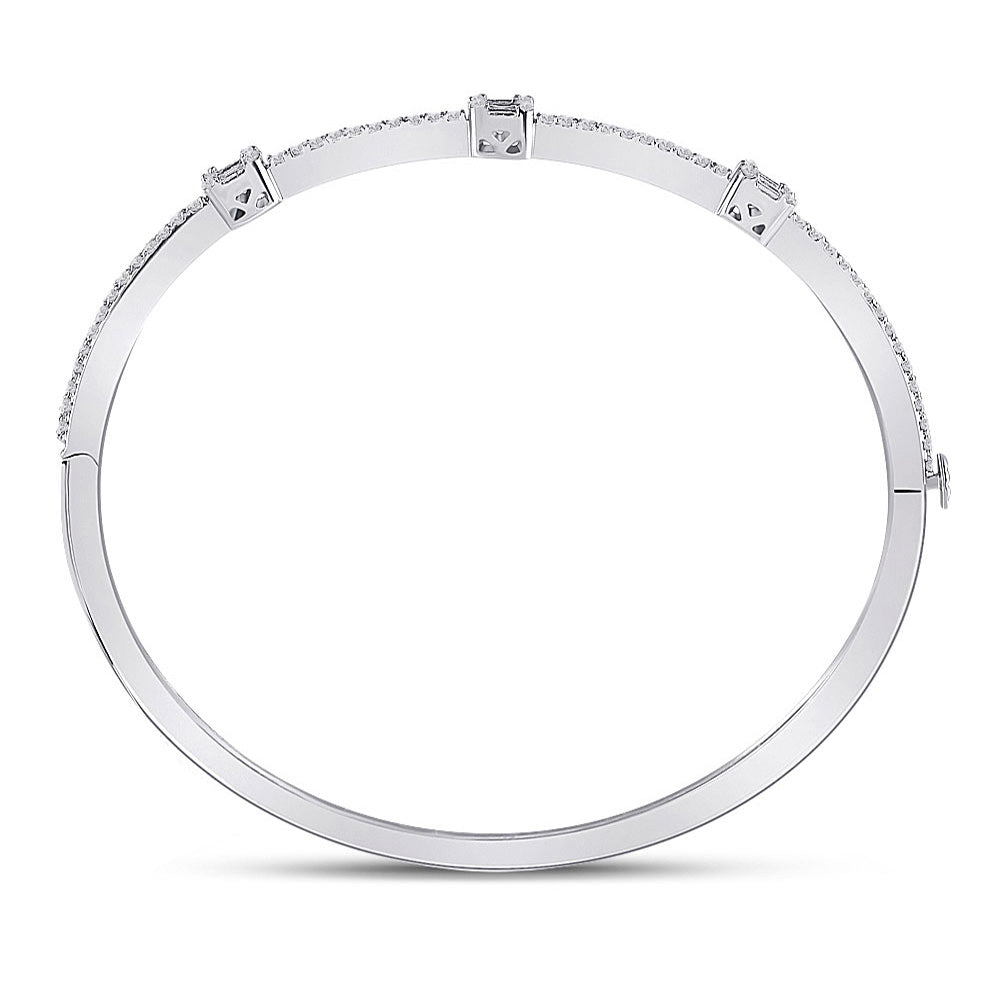 Keene Jewelers 14kt White Gold Womens Baguette Diamond Bangle Bracelet 5/8 Cttw