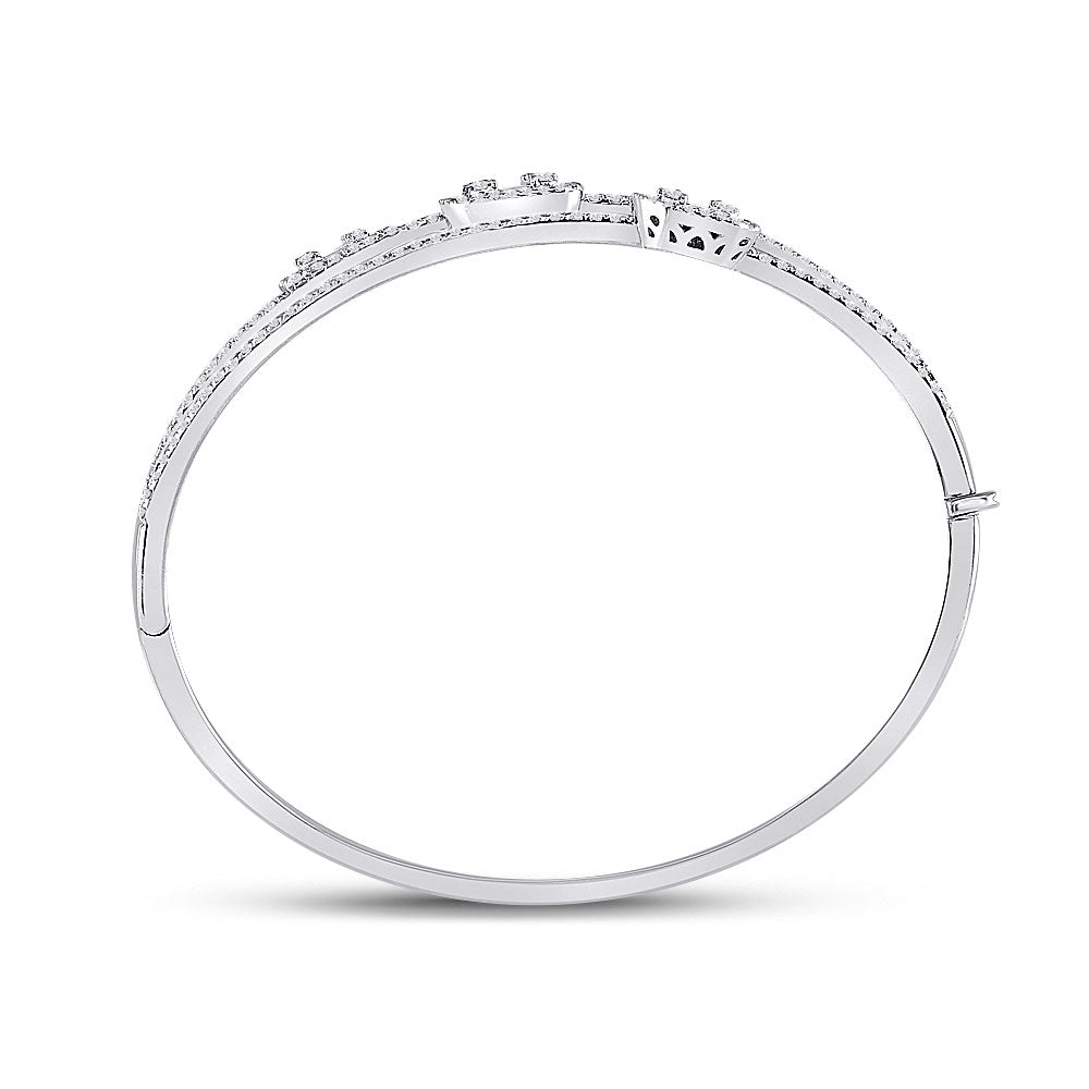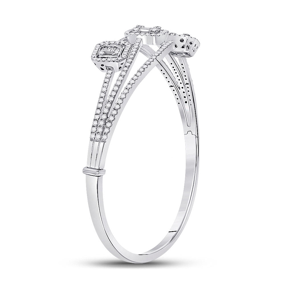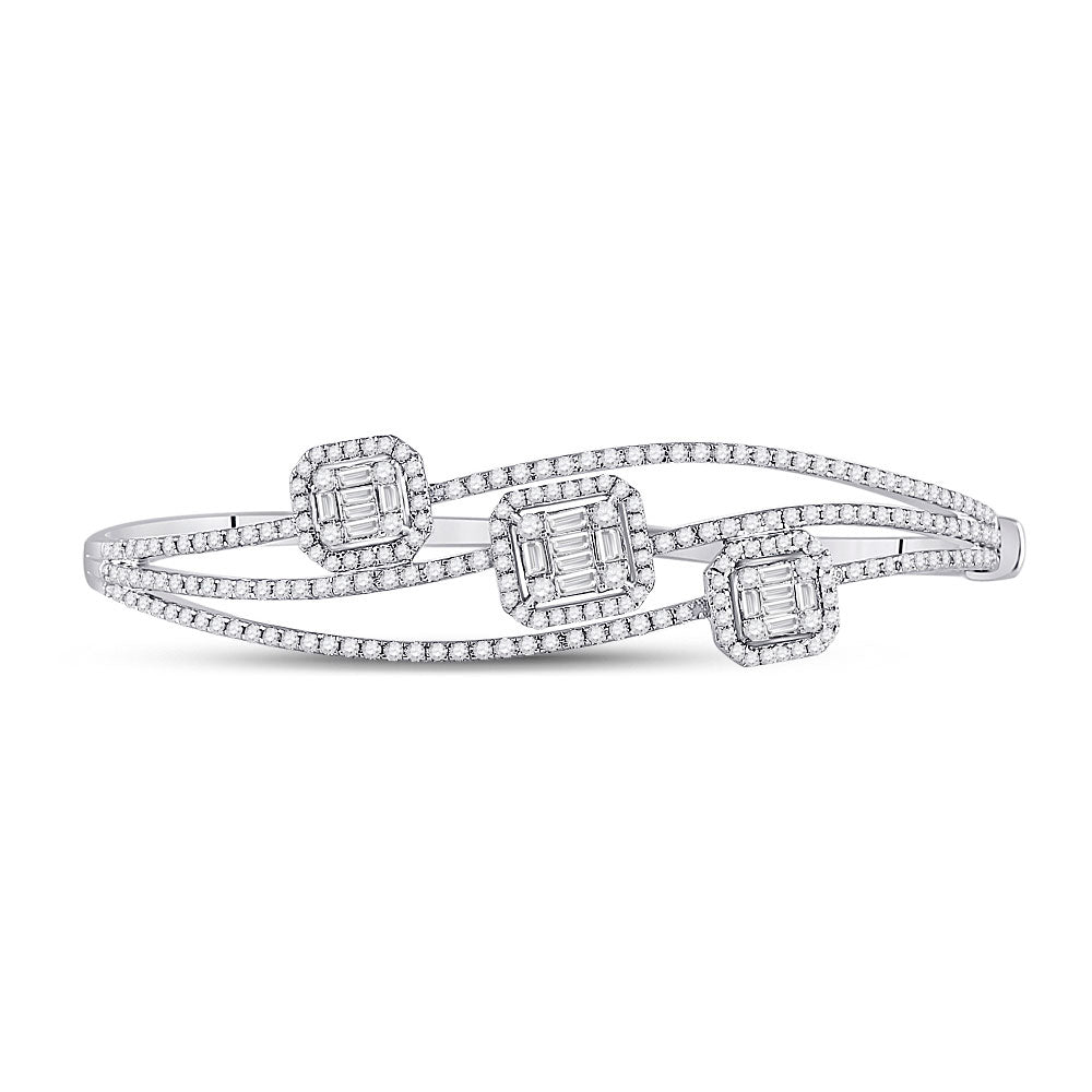 Keene Jewelers 14kt White Gold Womens Baguette Diamond Cluster 3-stone Bracelet 1-3/4 Cttw