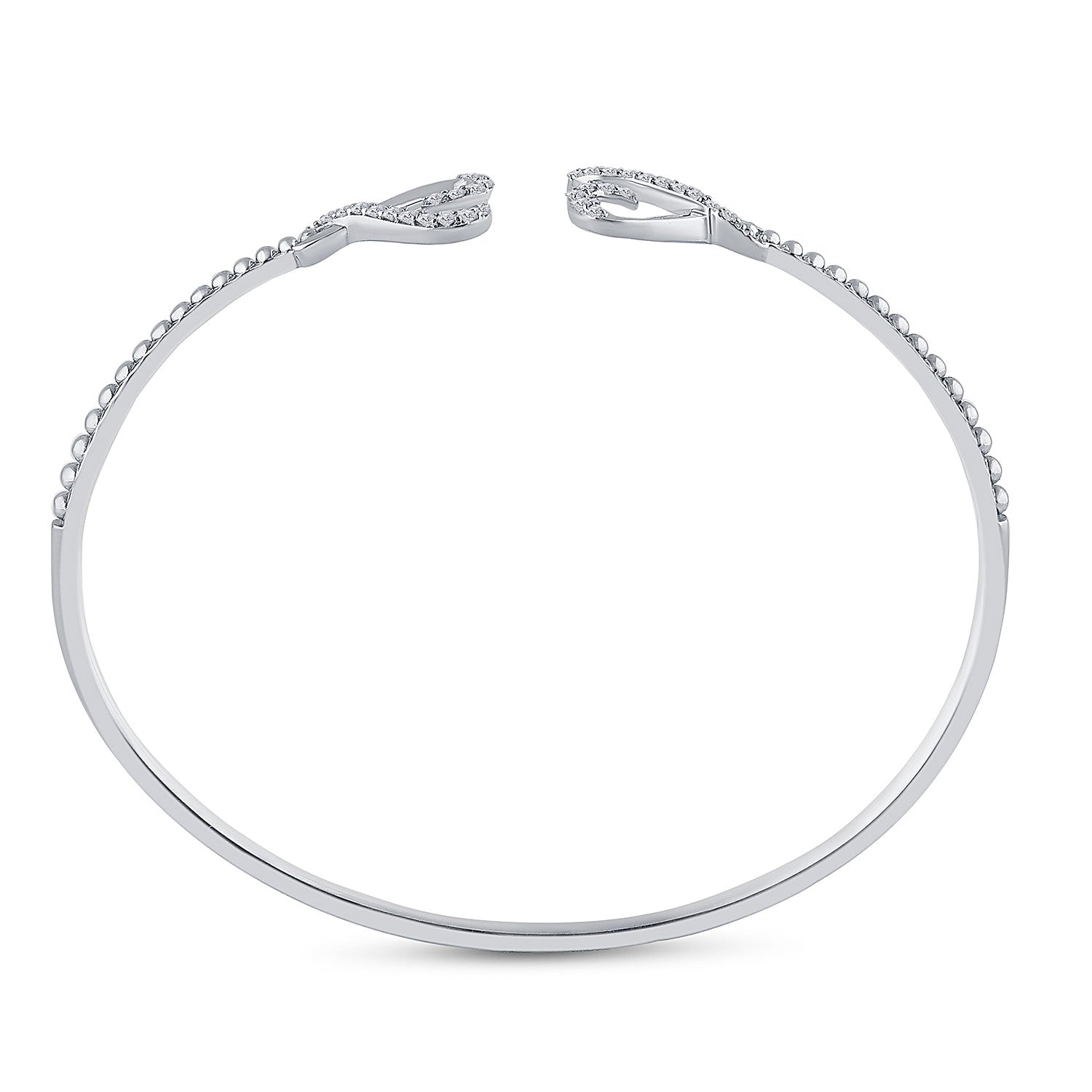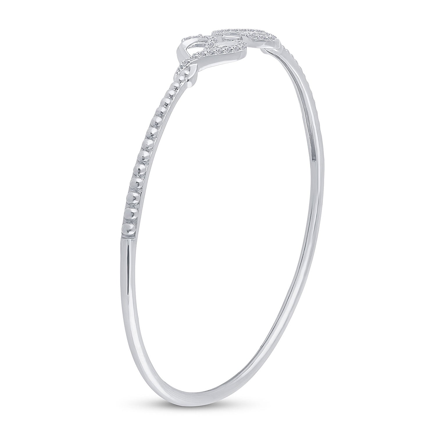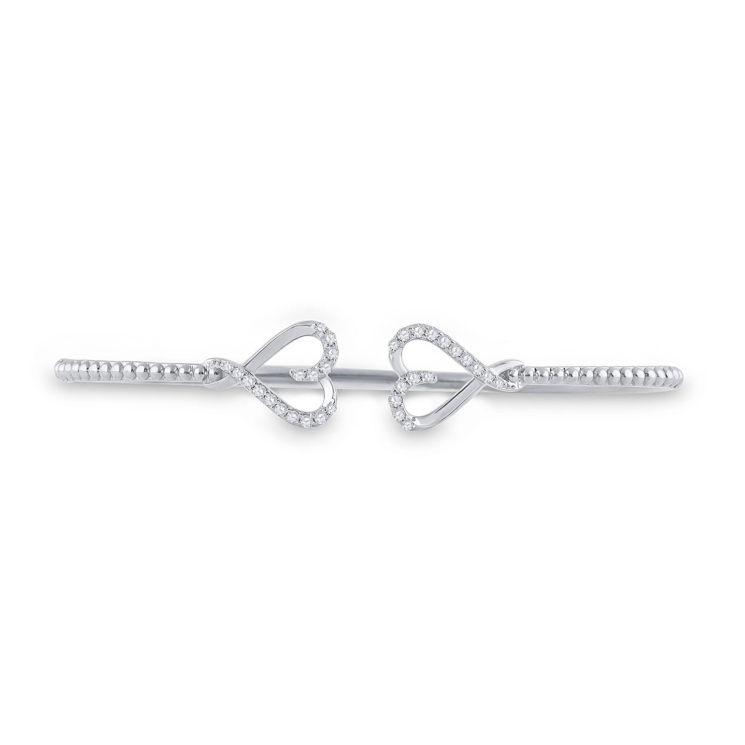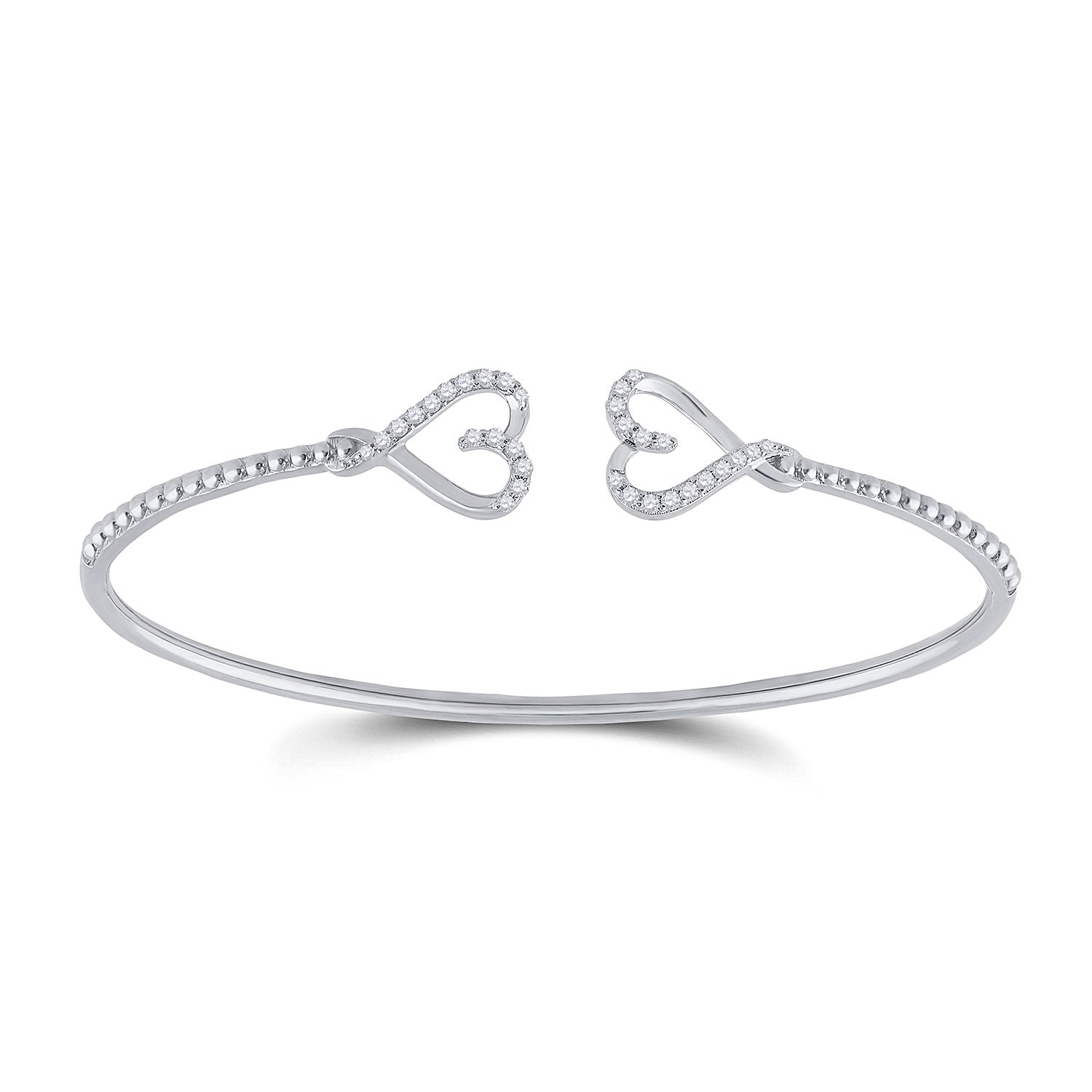 Keene Jewelers 14kt White Gold Womens Round Diamond Bisected Heart Bangle Bracelet 1/5 Cttw