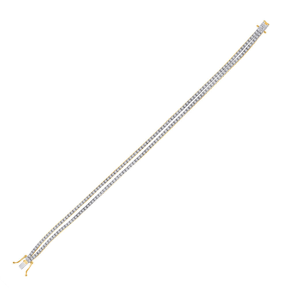 Keene Jewelers 14kt Yellow Gold Womens Round Diamond 2-Row Tennis Bracelet 1 Cttw