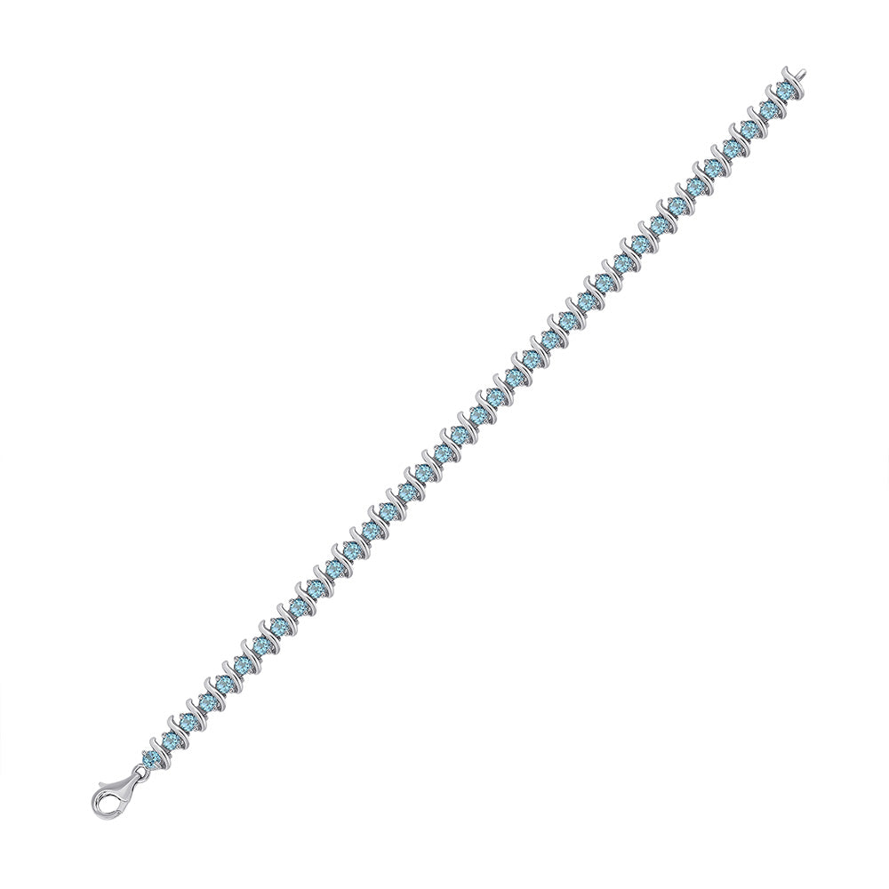 Keene Jewelers Sterling Silver Womens Round Lab-Created Blue Topaz Tennis Bracelet 6-1/2 Cttw
