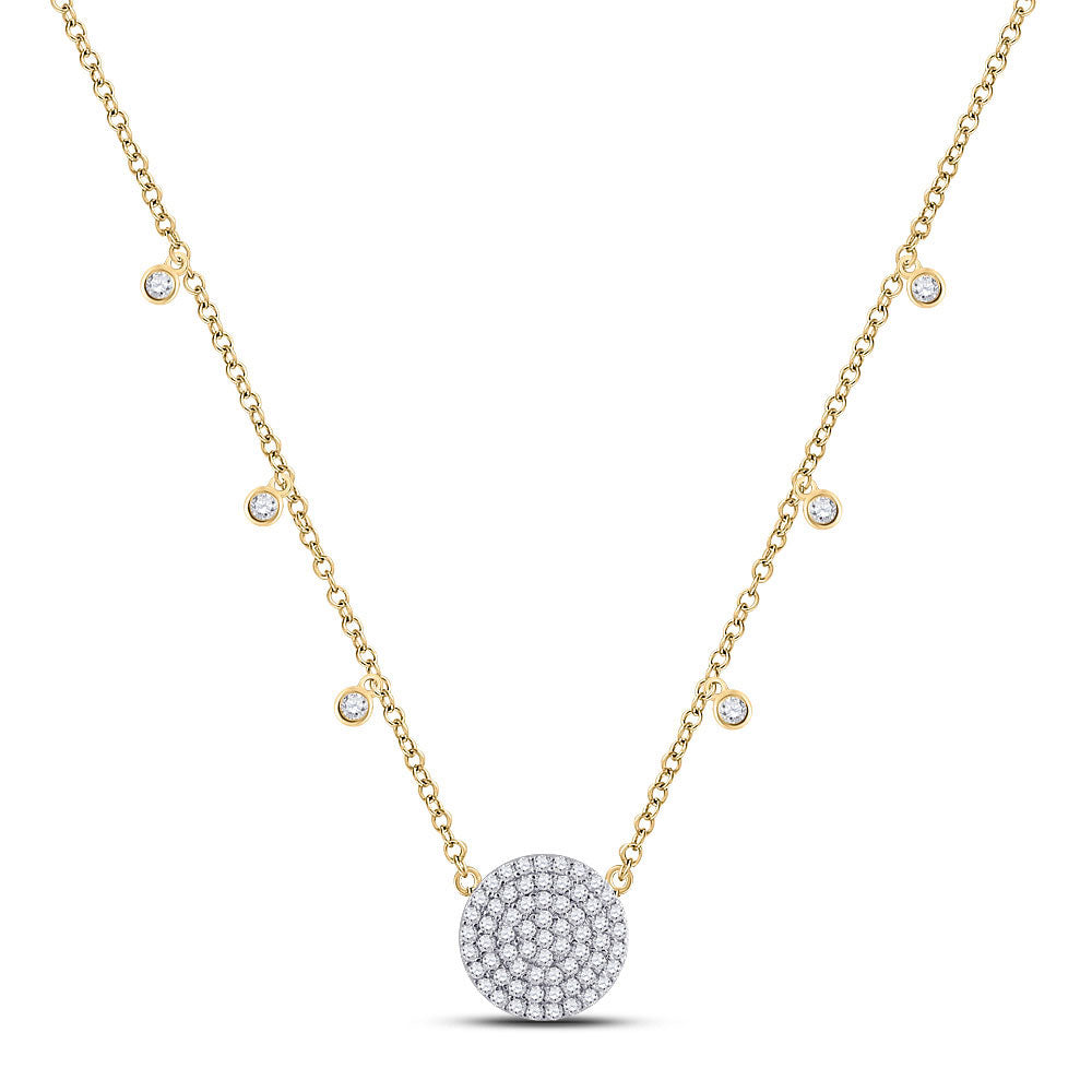Keene Jewelers 10kt Yellow Gold Womens Round Diamond Circle Cluster Necklace 3/4 Cttw