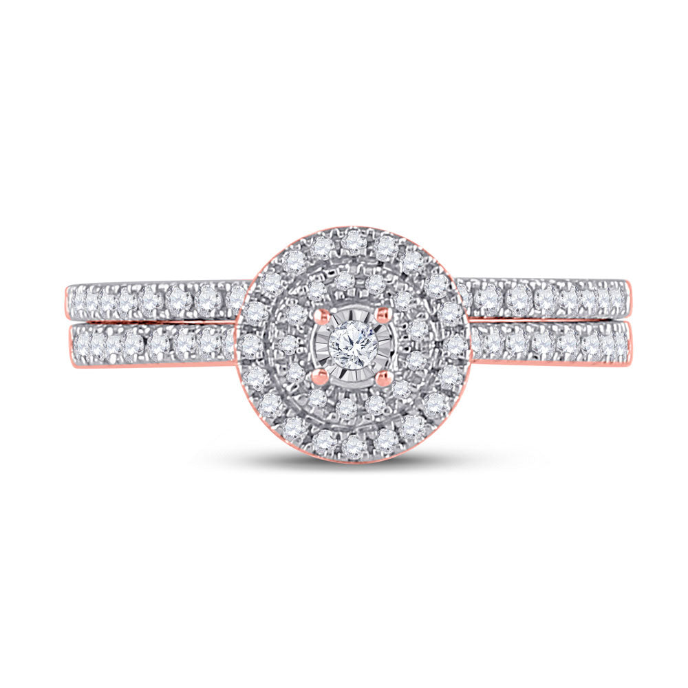 Keene Jewelers 10kt Rose Gold Round Diamond Bridal Wedding Ring Band Set 1/3 Cttw