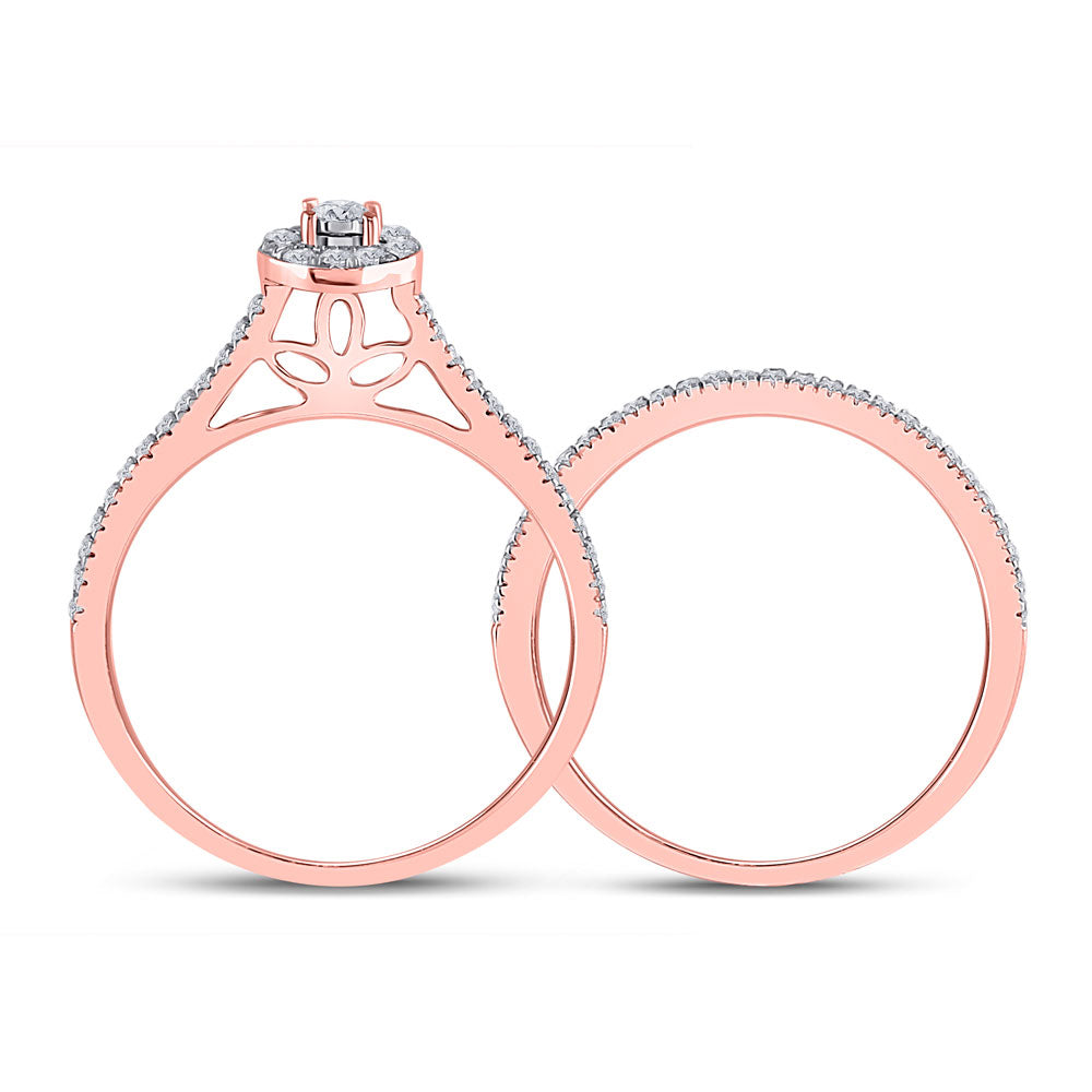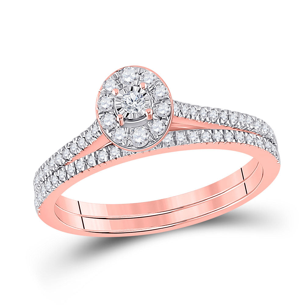 Keene Jewelers 10kt Rose Gold Round Diamond Oval Bridal Wedding Ring Band Set 1/3 Cttw