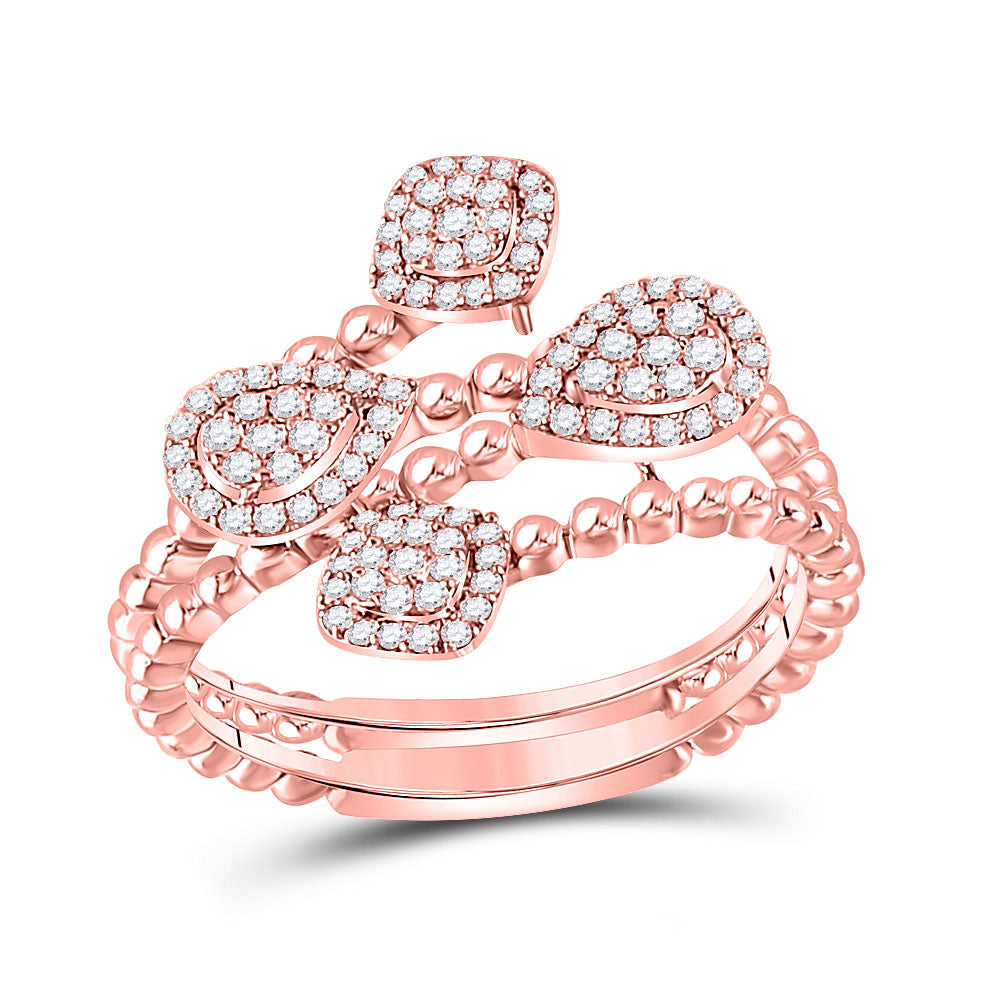 Keene Jewelers 10kt Rose Gold Womens Round Diamond Beaded Geometric Wrap Fashion Ring 1/3 Cttw