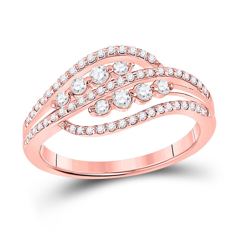 Keene Jewelers 10kt Rose Gold Womens Round Diamond Crossover Fashion Ring 1/2 Cttw
