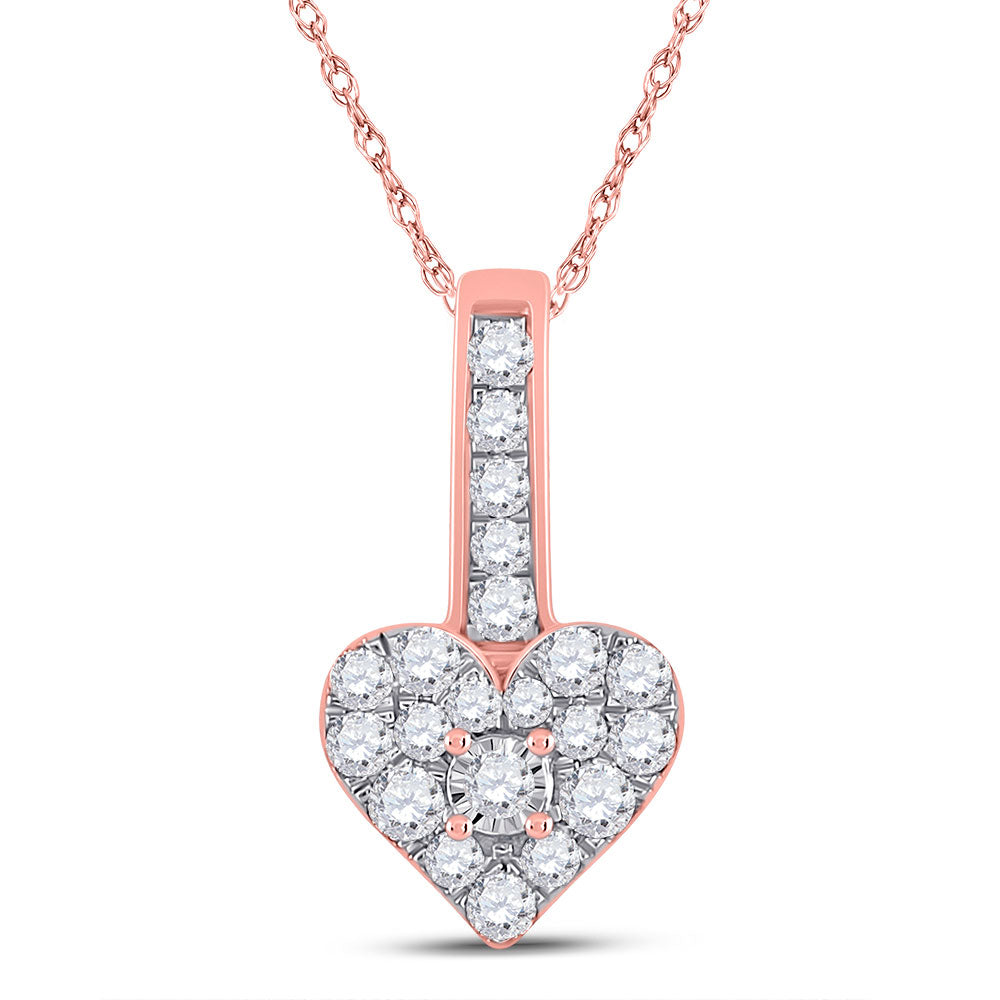 Keene Jewelers 10kt Rose Gold Womens Round Diamond Heart Pendant 1/3 Cttw
