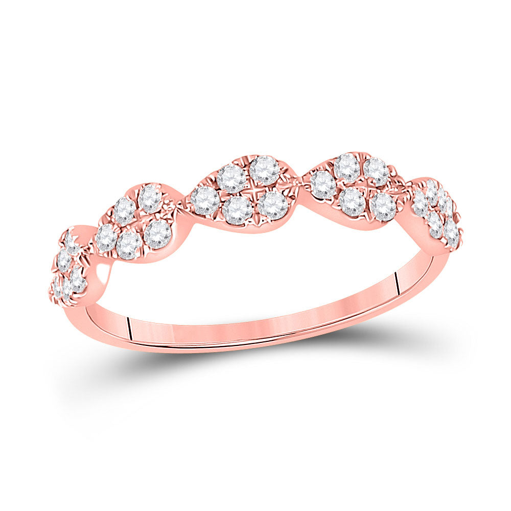 10kt Rose Gold Womens Round Diamond Teardrop Stackable Band Ring 1/3 Cttw