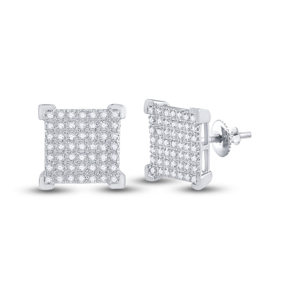 Keene Jewelers 10kt White Gold Mens Round Diamond Square Earrings 1/4 Cttw