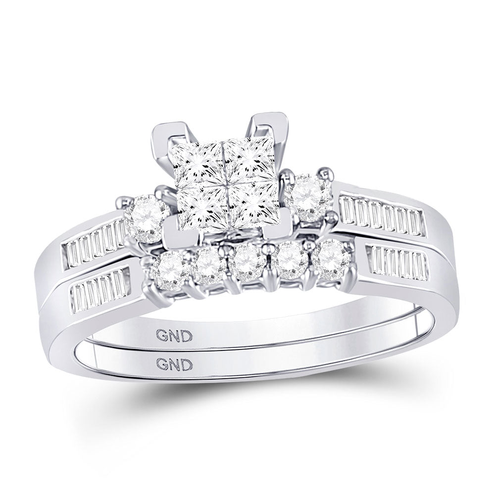 Keene Jewelers 10kt White Gold Princess Diamond Bridal Wedding Ring Band Set 1/2 Cttw - Size 5