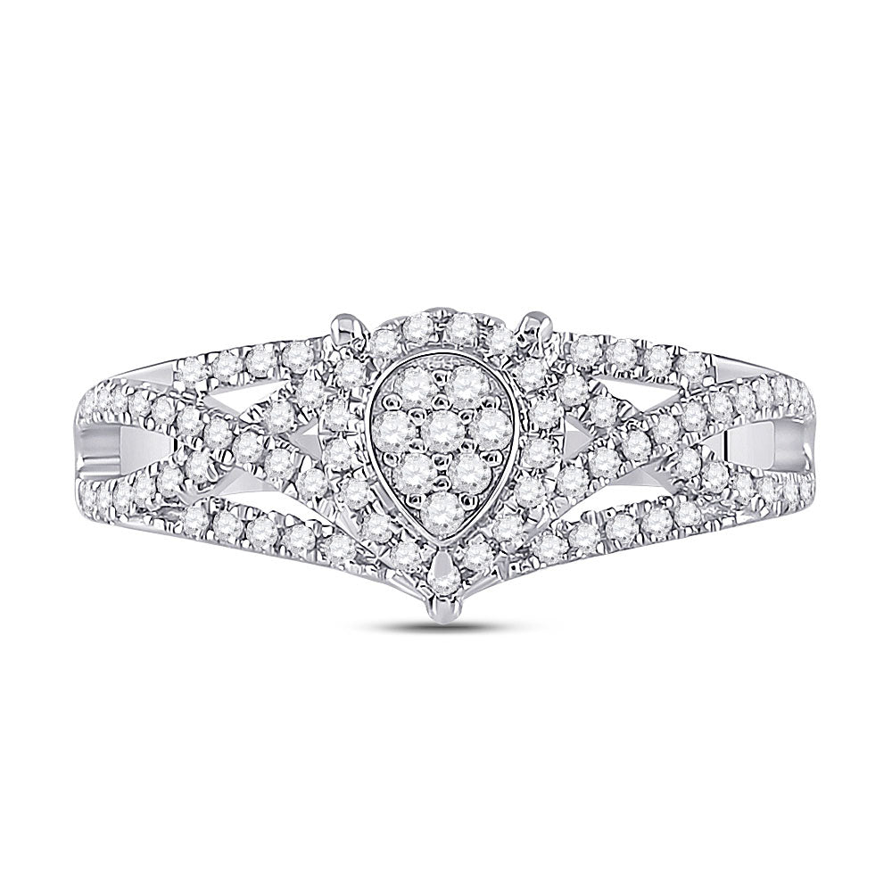 Keene Jewelers 10kt White Gold Womens Round Diamond Teardrop Cluster Ring 1/2 Cttw