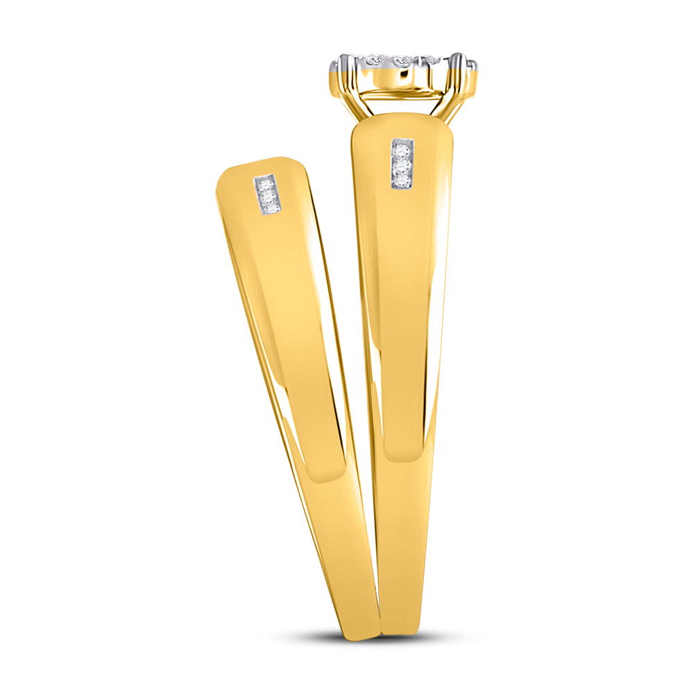 Keene Jewelers 10kt Yellow Gold His Hers Round Diamond Cluster Matching Wedding Set 1/3 Cttw