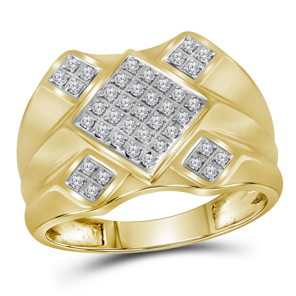 Keene Jewelers 10kt Yellow Gold Mens Round Diamond Diagonal Square Cluster Ring 1/3 Cttw